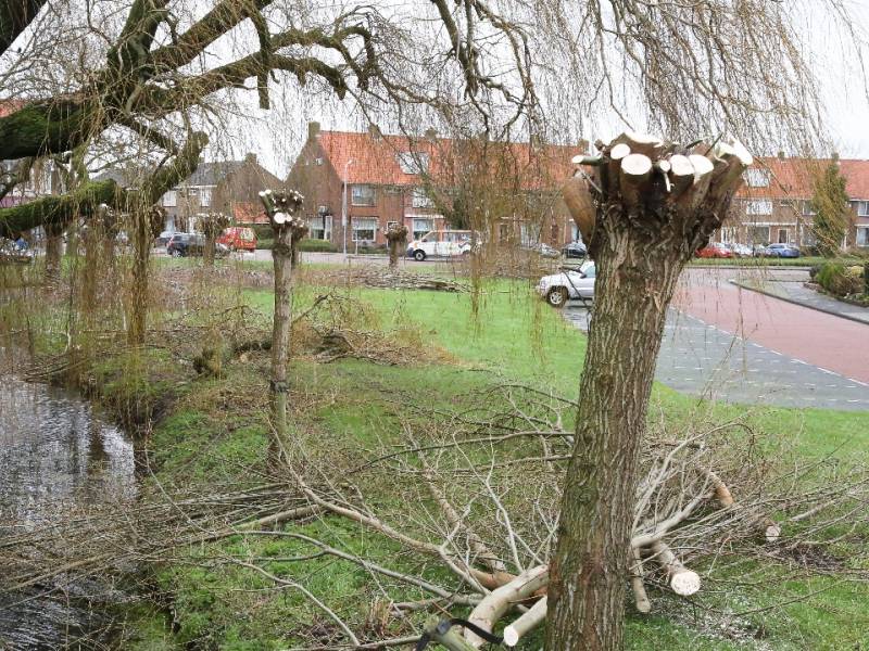 Elk jaar rond deze tijd worden door de hele gemeente knotwilgen gesnoeid. Dat dient om de 2 of 3 jaar te gebeuren. Maandagmorgen waren medewerkers van de gemeente bezig om de rij knotwilgen langs de sloot tegenover de Daliastraat te snoeien.