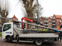 In twee dagen tijd werden alle 17 lantaarnpalen vernieuwd. Dat betekende graaf- en hijswerk. Om de lantaarnpalen uit de grond te hijsen en de nieuwe op hun plek te tillen, gebruikt men de hydraulische takel op de vrachtwagen.