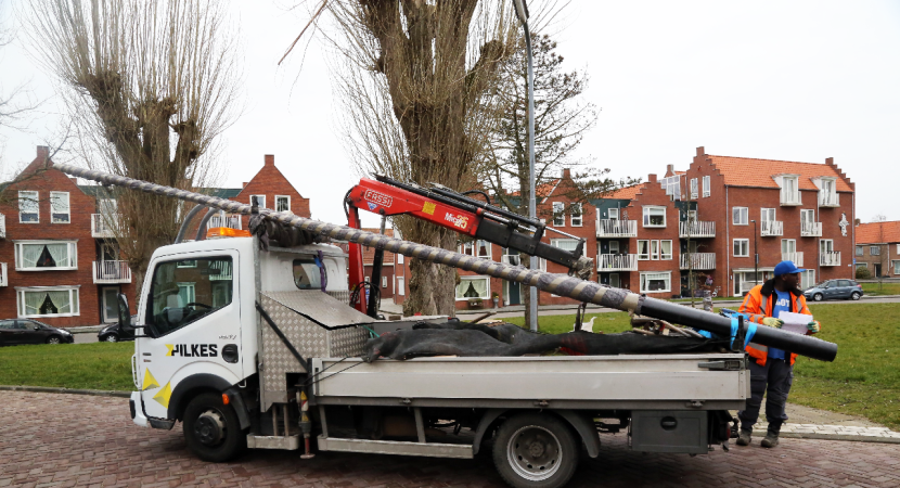 Maandag en dinsdag waren medewerkers van Pilkes aan het werk in de Vissers- en Sint Gerardusstraat en Vincentiusweg. Hier werden in totaal 17 lantaarnpalen vervangen.