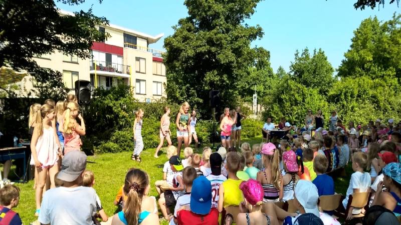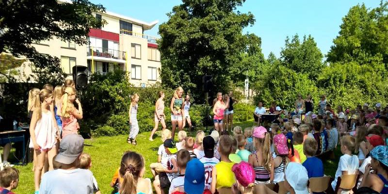 Vrijdagmorgen was er voor de leerlingen van basissschool De Springplank aan de Leendert Spaanderlaan een playbackshow. Door het mooie zomerse weer werd dit spektakel buiten gehouden.
