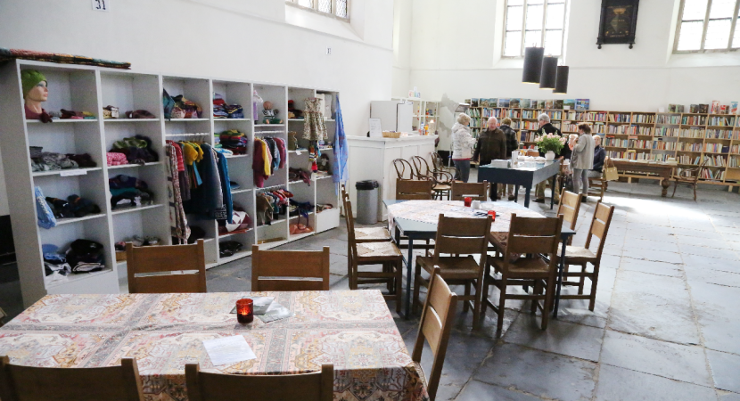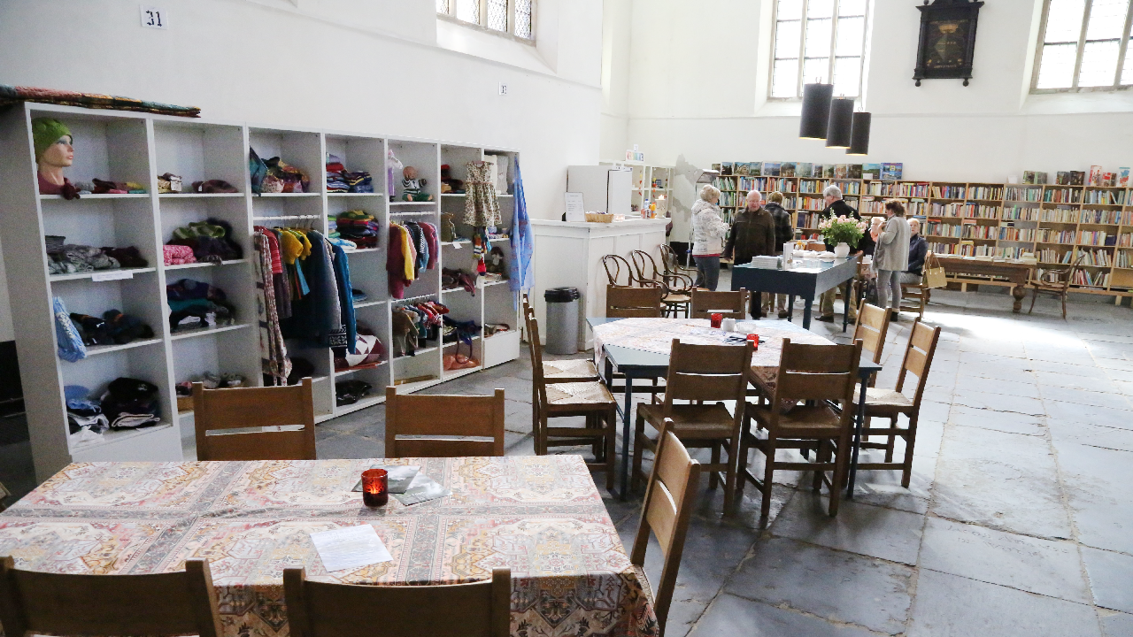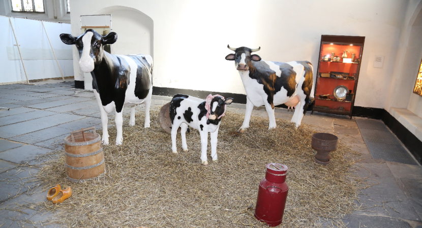 Op deze manier ervaren de kinderen hoe het een beetje was hon-derd jaar geleden. Toen werden namelijk koeien tijdelijk gestald in de Grote Kerk omdat de weilanden onder water gelopen waren. Het werd zo een leuke schilderles op locatie.