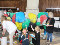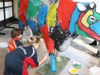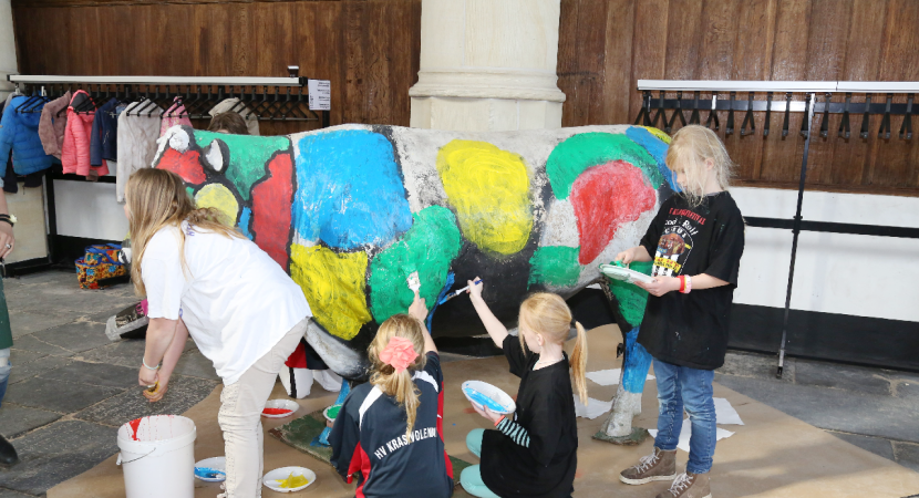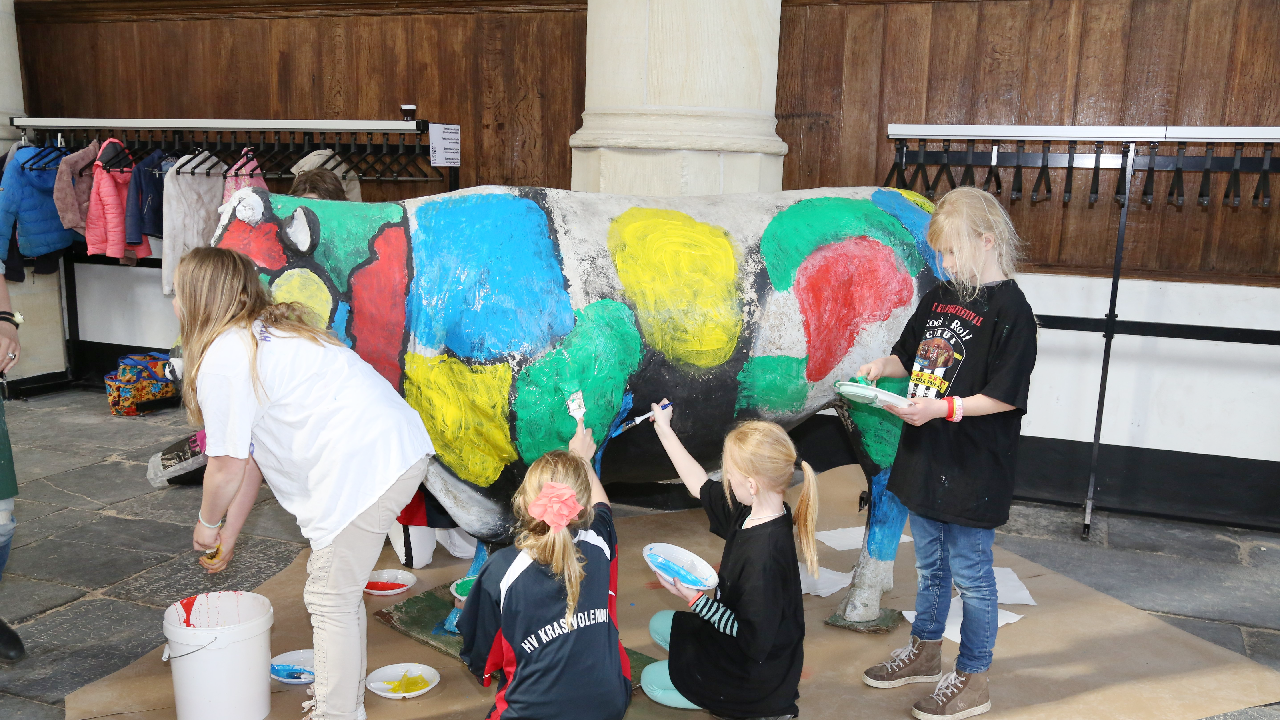 Levensgrote koe beschilderen in de Grote Kerk
