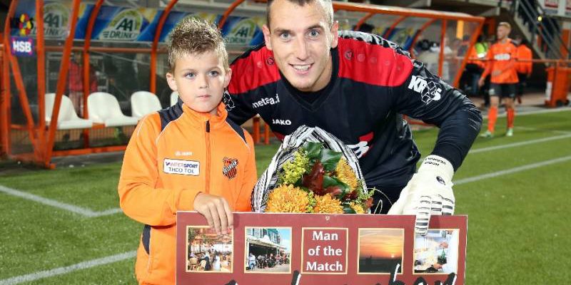 Ook zijn ouders Walter en Mariska de Wit waren in het Kras-stadion present. Na afloop huldigde de mascotte de ‘Man of the Match’ en dat was doelman Hobie Verhulst. Die kreeg bloemen van Bloemenweelde en een kadobon van Café De Dijk aangereikt.