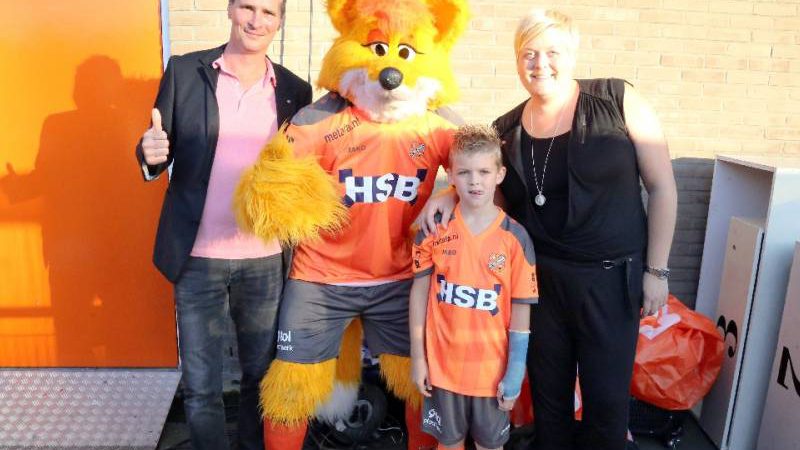 De mascotte beleefde een mooie voetbalavond. Ook ging hij even op de foto met zijn favoriete speler Jack Tuijp.