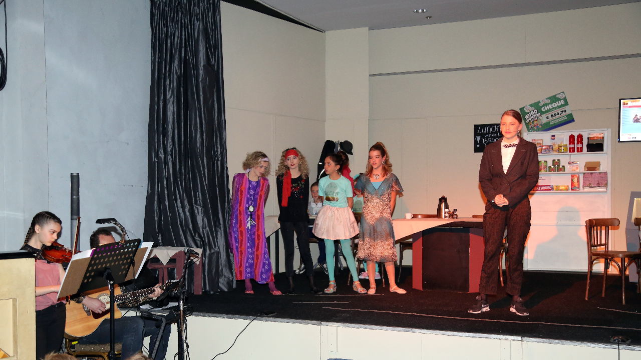 Het verhaal van “Was dit het nieuws…” ging over het samenstellen van een krant. Een groot compliment mag gegeven worden aan de jonge musicalsterren en de vele vrijwilligers die aan deze musical hebben meegewerkt. Na afloop was er een ovationeel applaus.