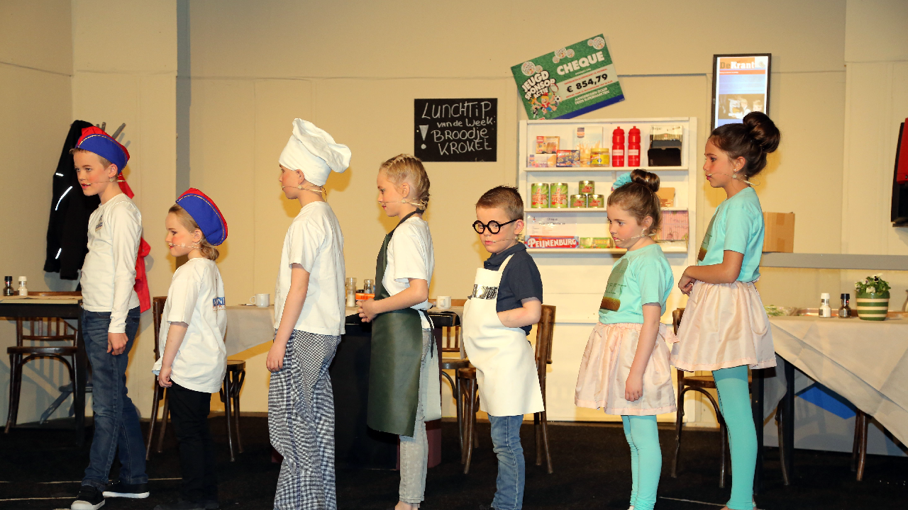 In de theaterzaal van het Damhotel vond zaterdagavond en zondagmiddag voor een uitverkochte zaal twee keer de voorstelling plaats van de nieuwe zelf geschreven musical van Kindermusical-vereniging De Toverbal, getiteld “Was dit het nieuws…”.