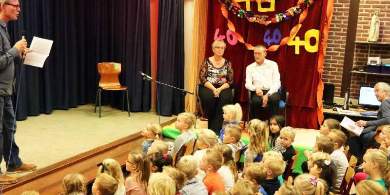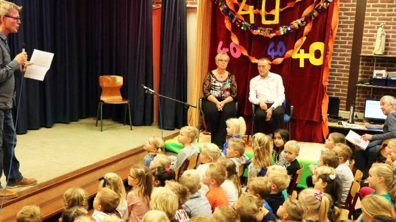 Het was vrijdag feest op basisschool de Spinmolen. Juf Nel van Sinderen-Veerman vierde haar 40-jarig jubileum als kleuterjuf in het onderwijs. ‘s Middags was er in de aula een feesprogramma.