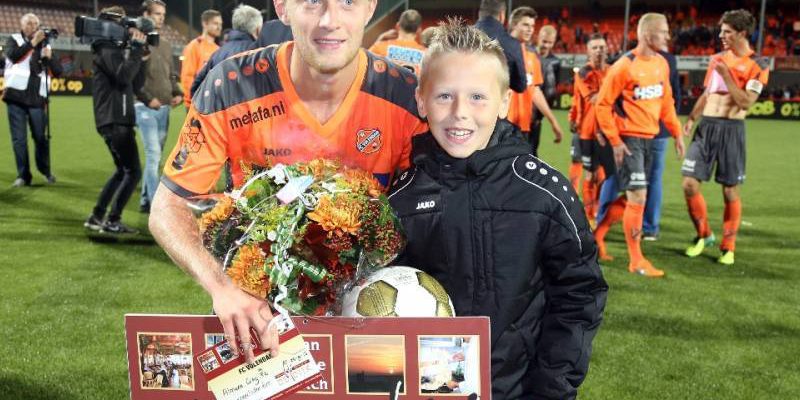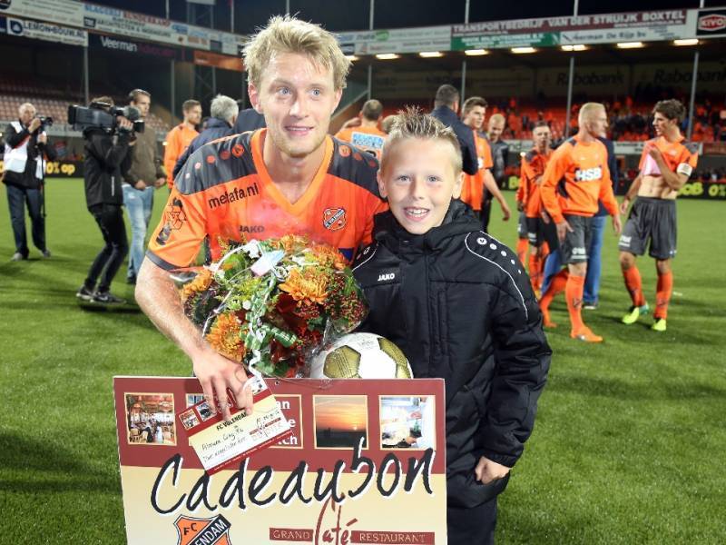 De 8-jarige Niels Kwakman, die woont op de Bloedkoraal 112, was vrijdag de mascotte van FC Volendam tijdens de wedstrijd tegen Almere City FC. Ook zijn ouders Tom Kwakman en Lisette Koning waren in het Kras-stadion present.
