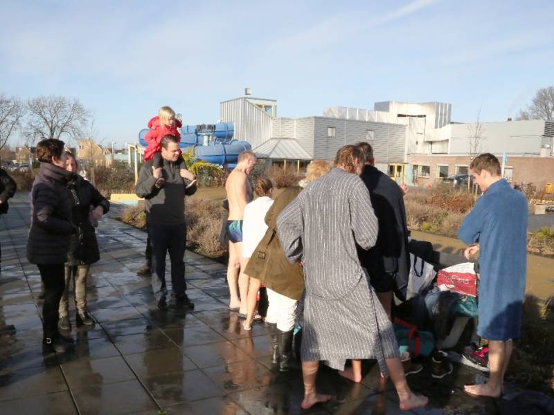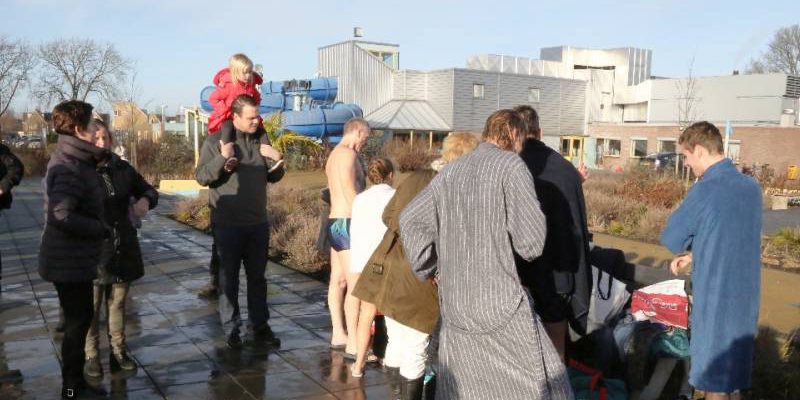 Om 12.00 uur werd het startsein gegeven voor de Nieuwjaarsduik op Nieuwjaarsdag. Na het aftellen sprongen de dames en heren, jongens en meisjes in het zwembad, waarvan het water een temperatuur van zo’n 9 graden had.