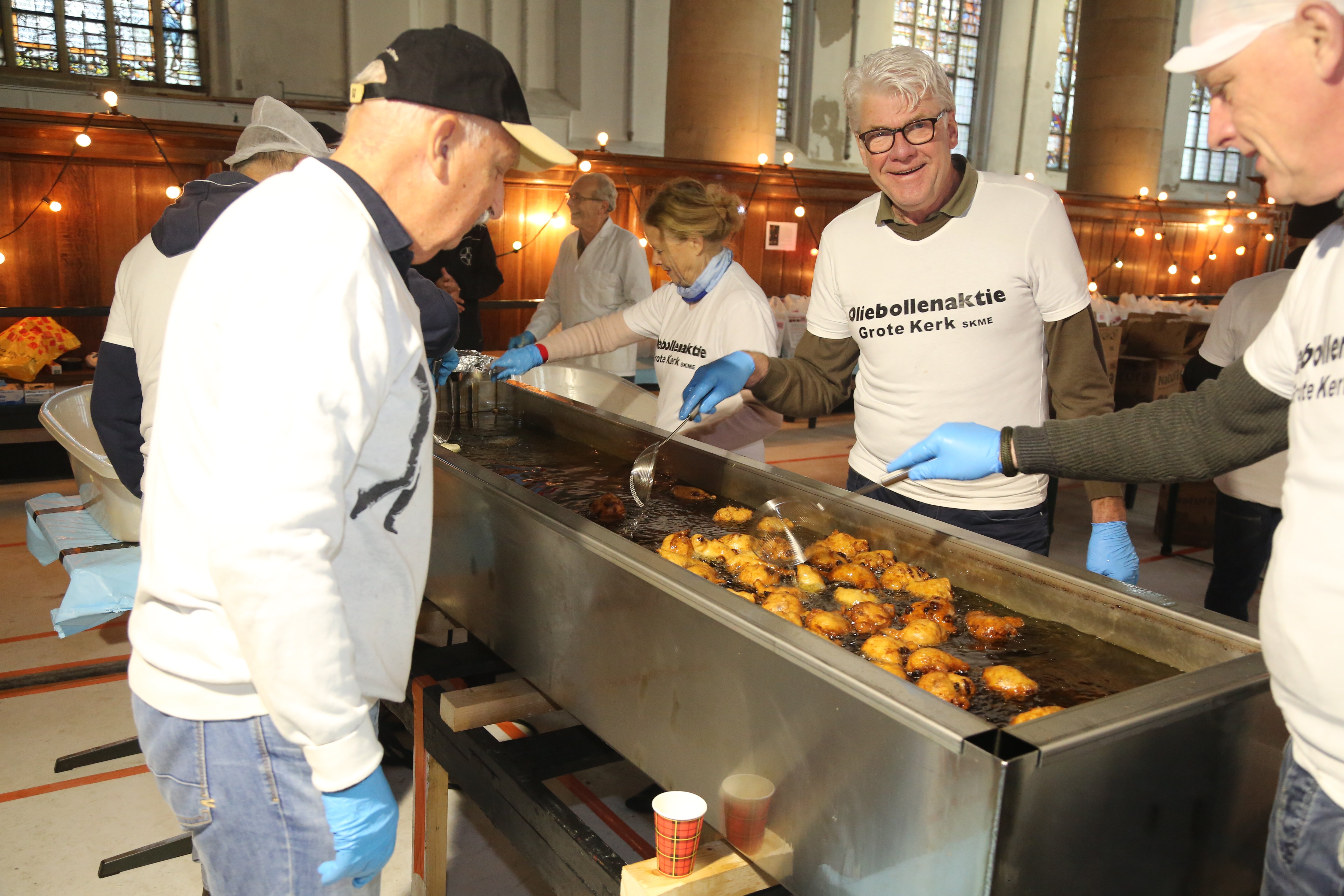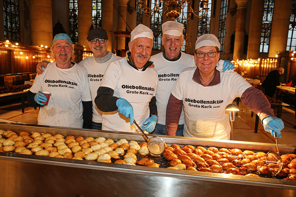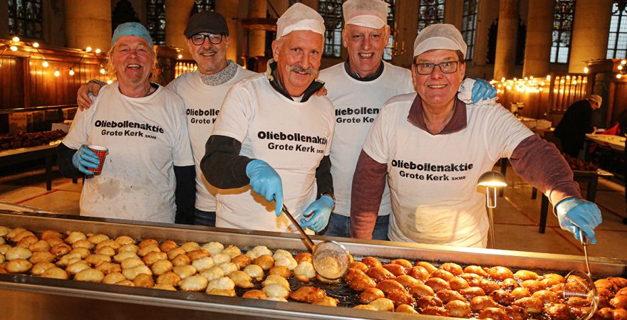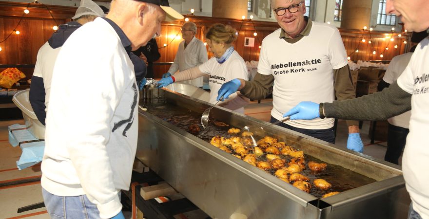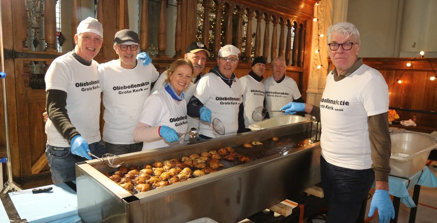 De Grote Kerk in Edam houdt dit jaar voor de veertiende keer de jaarlijkse oliebollenactie. Rond de vijftig vrijwilligers staan op 30 en 31 december klaar om duizenden appelbeignets en oliebollen te bakken voor het goede doel: nieuwe LED-verlichting in de kerk.