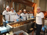Het beslag wordt traditioneel gemaakt in de hulpkerk, waar het in babybadjes rijst bij de radiatoren. Voor de actie zijn 370 pakken mix, 50 kilo rozijnen en 300 liter speciale olie nodig. De oliebollenknijpers letten op mooie ronde bollen, zoals elk jaar.