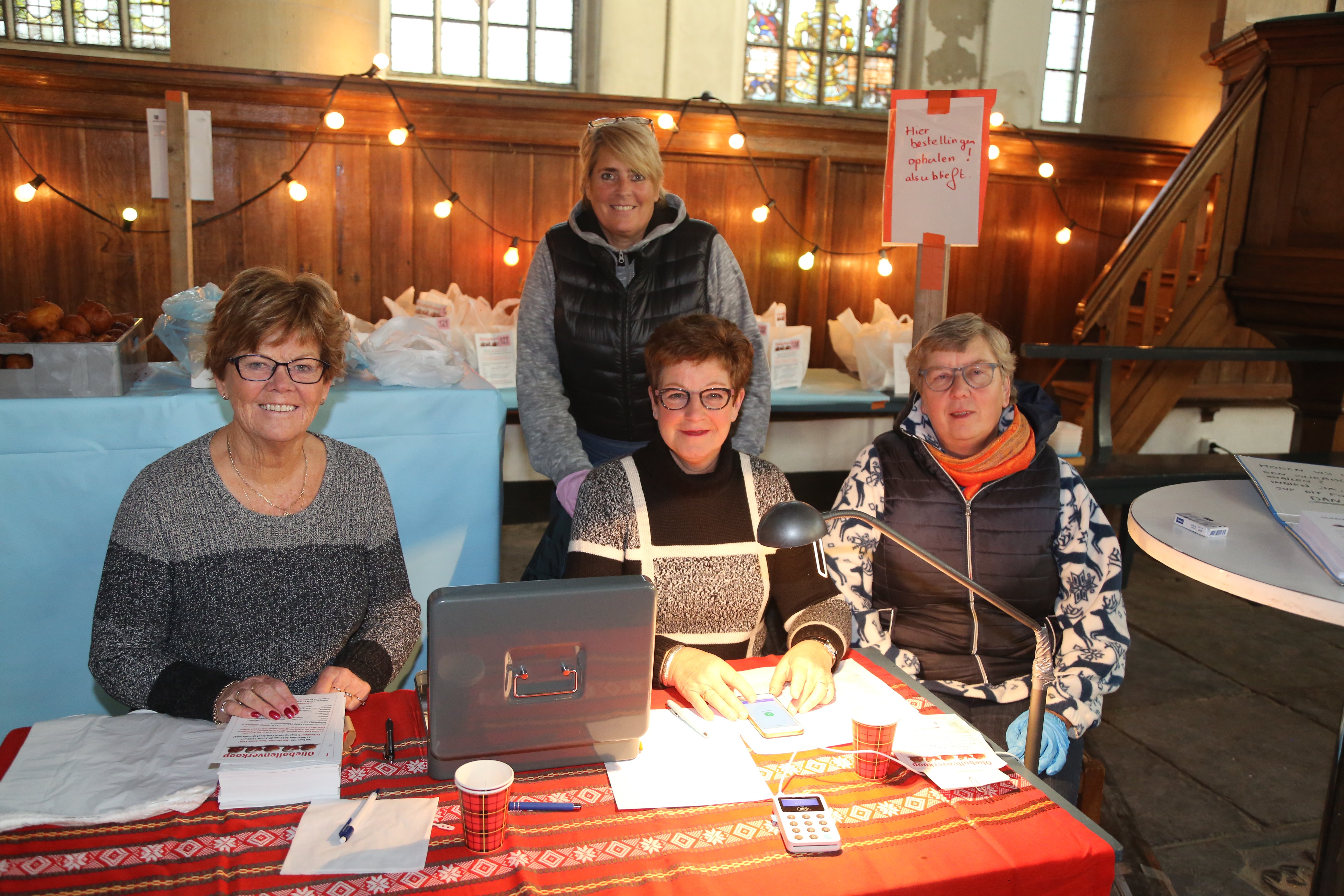 In het koor van de kerk zijn zitplaatsen ingericht voor wie ter plekke een oliebol wil eten. Koffie, thee en glühwein zijn beschikbaar tussen 9.30 en circa 13.00 uur.