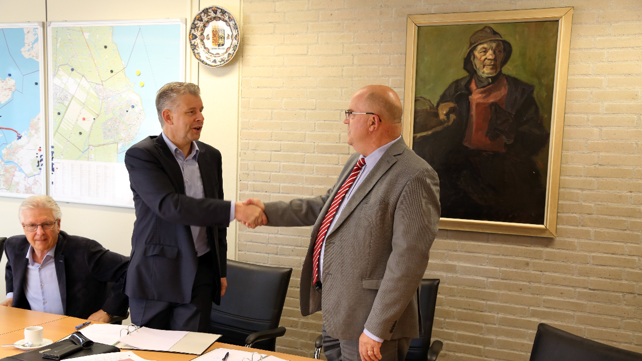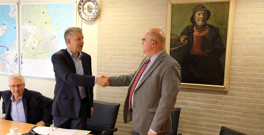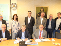 Dinsdagmorgen vond in de B&W-kamer van het Stadskantoor de feestelijke ondertekening plaats van de koopovereenkomst tussen de gemeente en Stichting Woningbeheer De Vooruitgang.