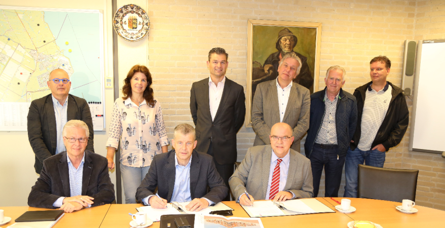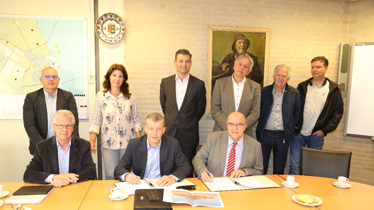 De overeenkomst behelst de verkoop van grond in de Broeckgouw fase 1E voor de bouw van tien grondgebonden sociale huurwoningen en 30 sociale huurappartementen. De overeenkomst werd ondertekend door Fred de Boer van De Vooruitgang en burgemeester Van Beek.