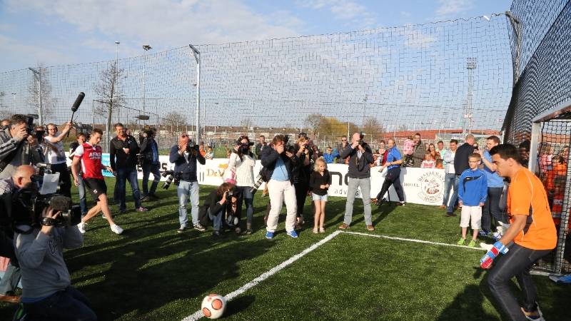Door Robert Mühren en Henk Veerman werden enkele penalties op het doel geschoten met keeper Jan Smit. De RKAV Volendam is erg blij met deze voetbalaanwinst voor de jeugd, die gesponsord is door de populaire zanger.