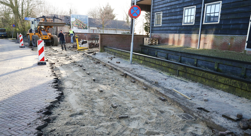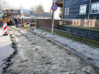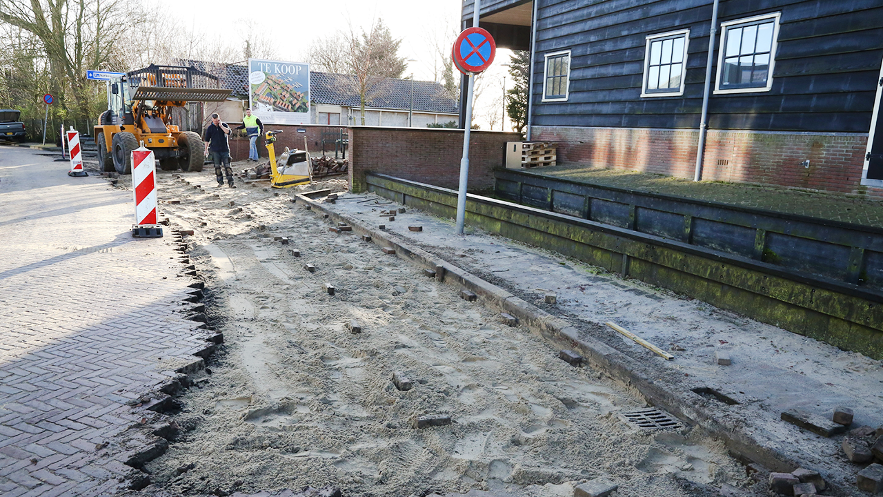 Liefst 250 kuub zand werd aangevoerd om het parkeerterrein op te hogen. Ook een deel van de rijweg op het Slobbeland moest herbestraat worden, omdat met de auto de oprit naar het terrein niet meer genomen kon worden. Dinsdag werd dit bestraten afgerond.
