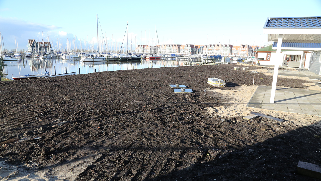 Het terrein achter het pand van de Gebr. Jonk is opgehoogd met liefst 1.800 kuub grond. Deze klus is uitgevoerd door aannemingsbedrijf Havik. Tevens is er een beschoeiing aangebracht aan de walkant van het IJsselmeer.