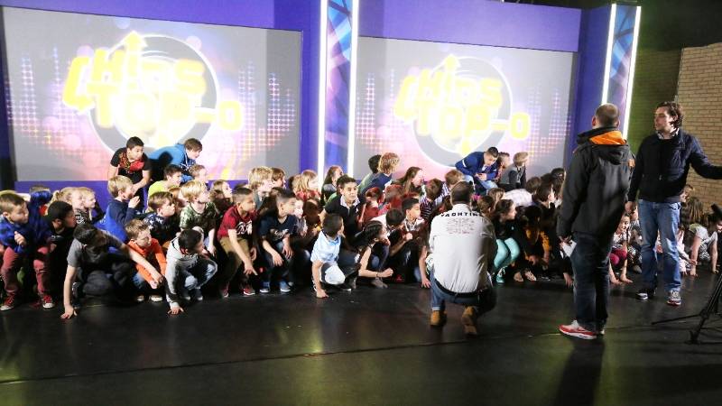 De tv-opnames voor Kids Top-20 namen de hele dag in beslag. De uitzendingen zijn op de zaterdag 18 april (Piramide), 25 april (Jozefschool) en 2 mei (Petrusschool) telkens om 8.10 uur op NPO3. Met veel enthousiasme werkten de leerlingen mee.