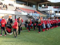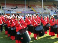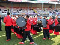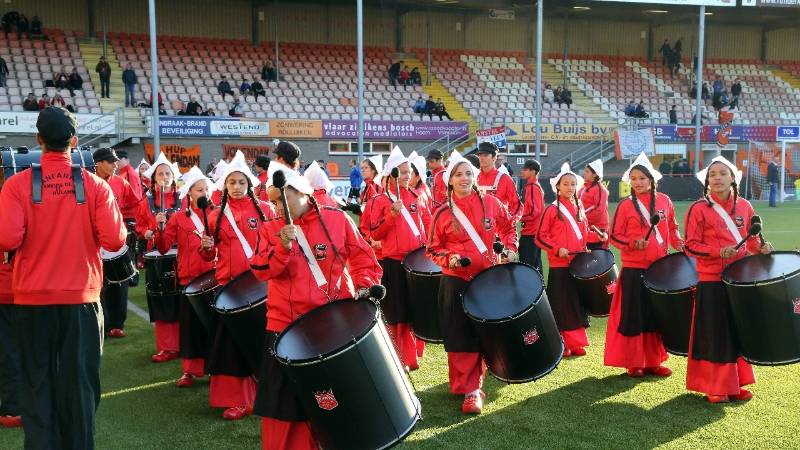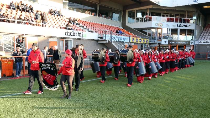 Het Fanfarra Amigos de Alhambra uit West-Friesland, bestaande uit 50 personen, verzorgde een mooie en luisterrijke trommelshow in het voetbalstadion.