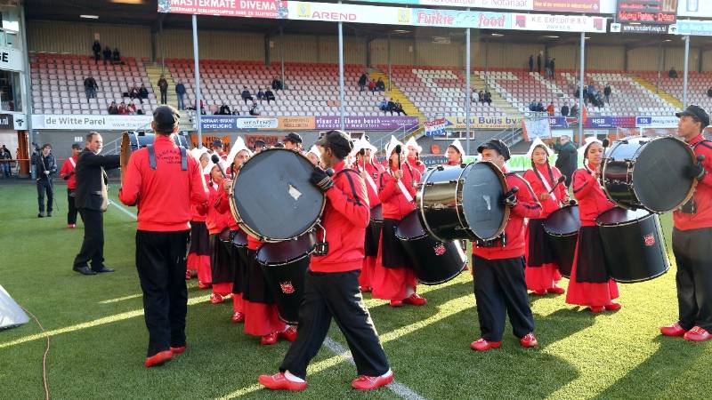 Het publiek in het Kras-stadion werd vrijdagavond vóór en onder de rust van de voetbalwedstrijd FC Volendam-VVV Venlo getrakteerd op een optreden van een sambaband.