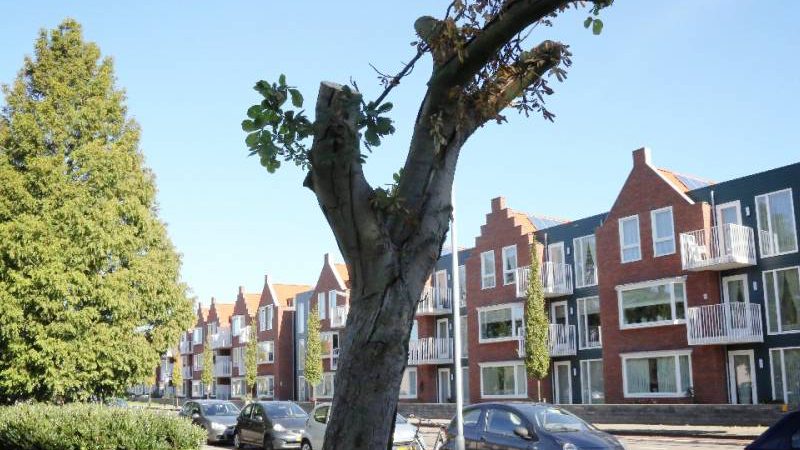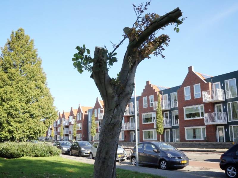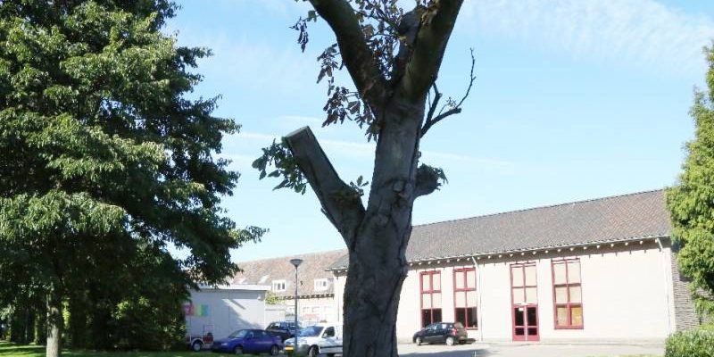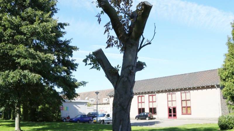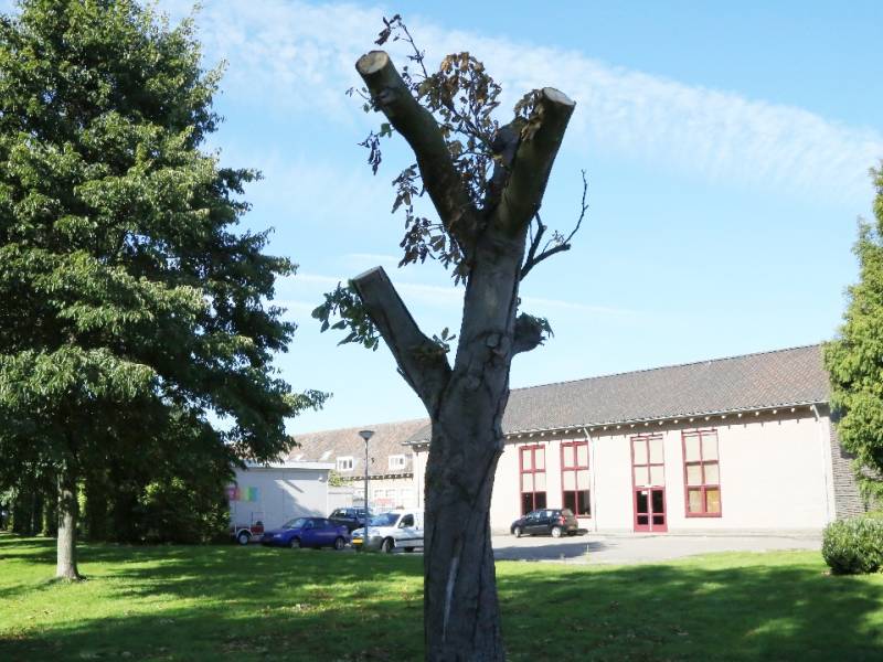 Door medewerkers van de afdeling Onderhoud & Beheer van de gemeente is afgelopen week een grote kastanjeboom, die op de Julianaweg staat nabij de voormalige Maria Gorettischool, kaal gehaald, zodat deze binnenkort gekapt kan worden.