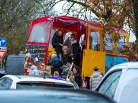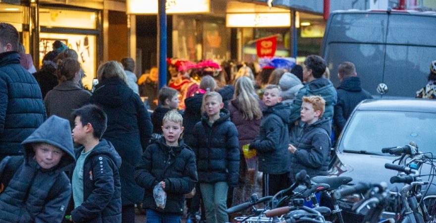 De Pietenbus werd geparkeerd bij de Munnikvelder, van waaruit de vrolijke brigade haar ronde langs de winkels begon. Door de grote drukte bewoog de stoet zich langzaam voort, maar dat mocht de pret niet drukken. Er werd gul gestrooid met moppies en ander lekkers, en overal werd enthousiast met de Pieten op de foto gegaan. Ondertussen mochten kinderen in- en uitklimmen in de bekende Pietenbus — een belevenis op zich.