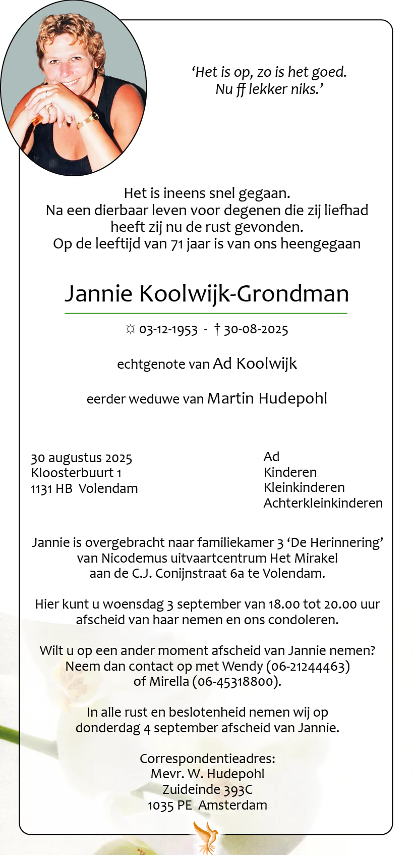 Wil eenieder die geen rouwcirculaire heeft ontvangen, deze aankondiging als zodanig beschouwen.