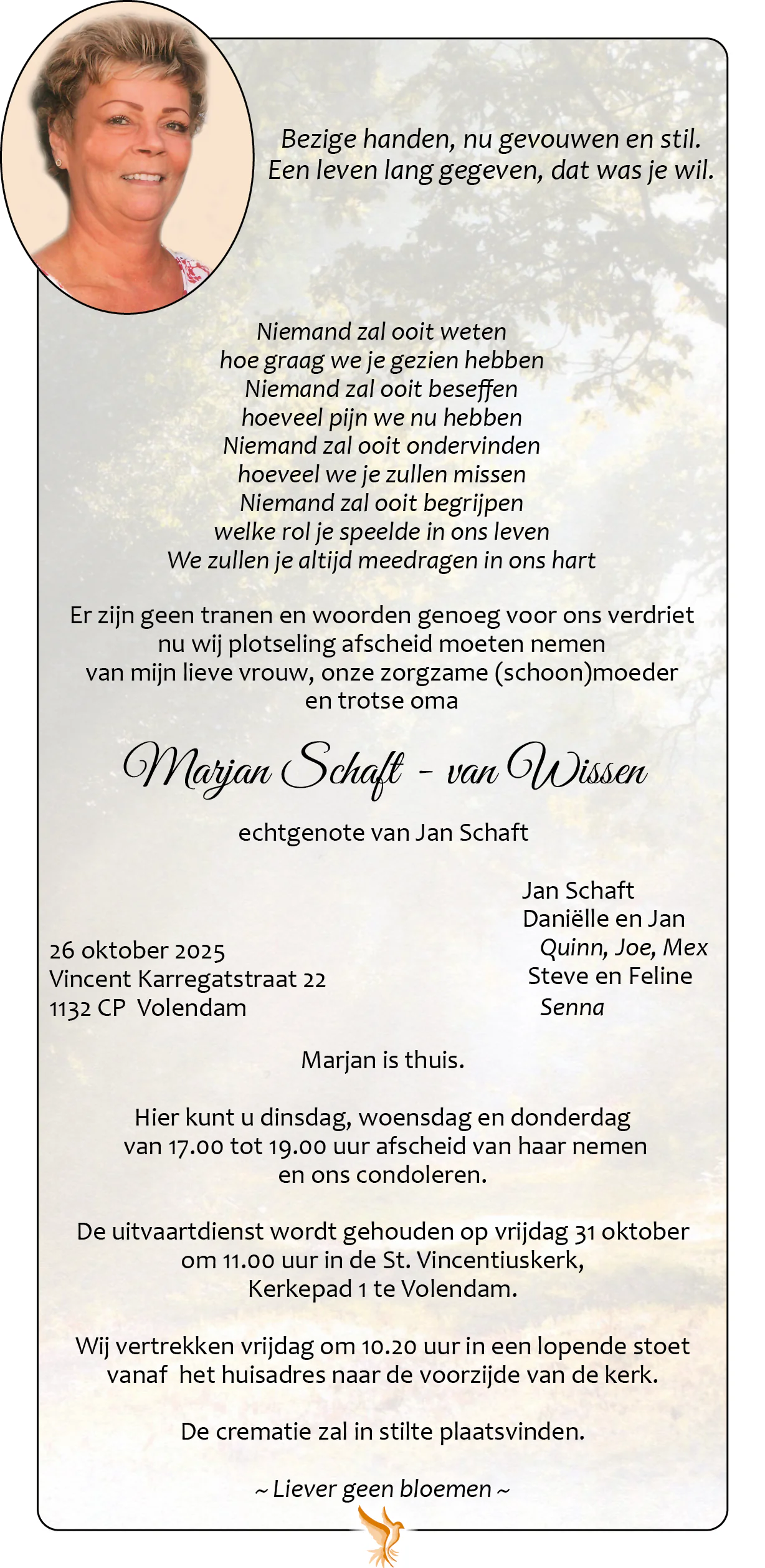 Wil eenieder die geen rouwcirculaire heeft ontvangen, deze aankondiging als zodanig beschouwen.