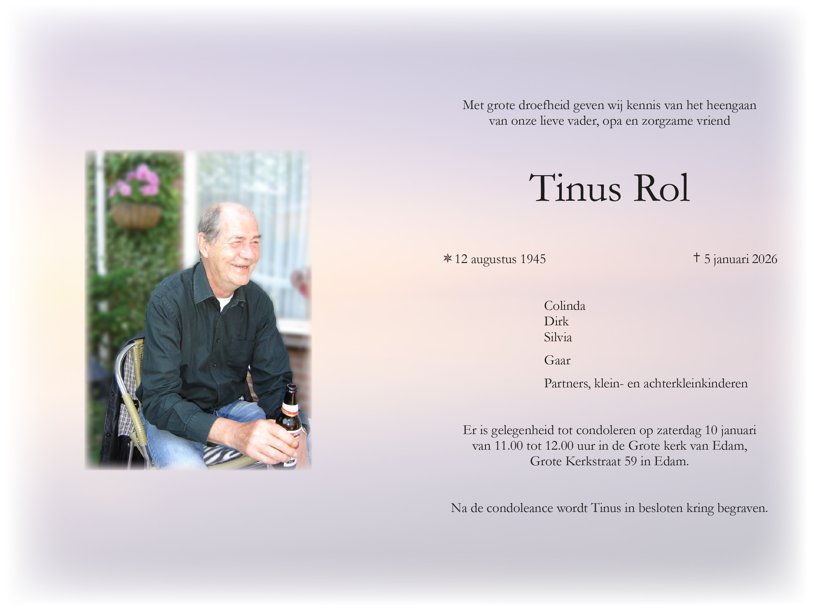 Na de condoleance wordt Tinus in besloten kring begraven.
