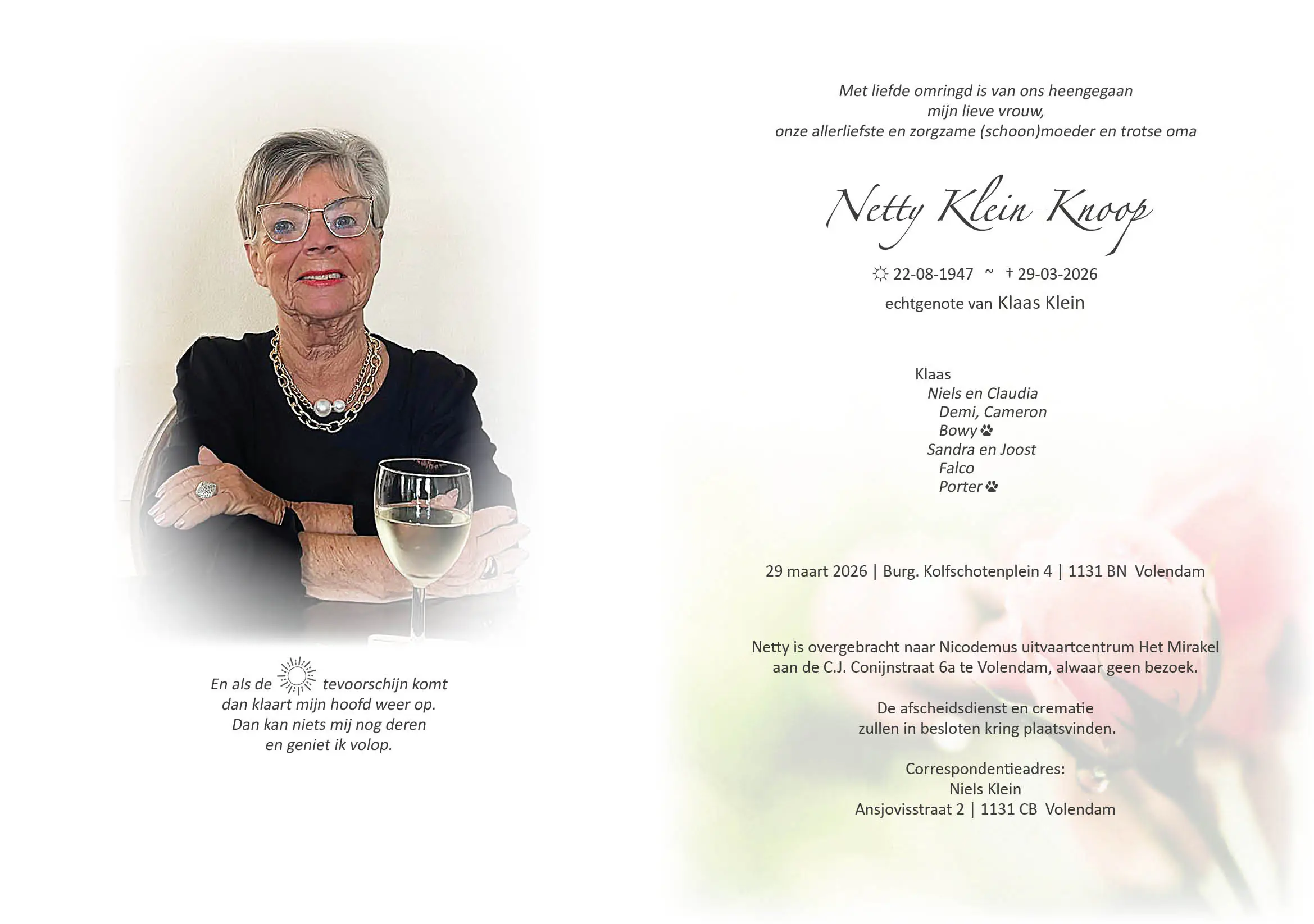 echtgenote van Klaas Klein