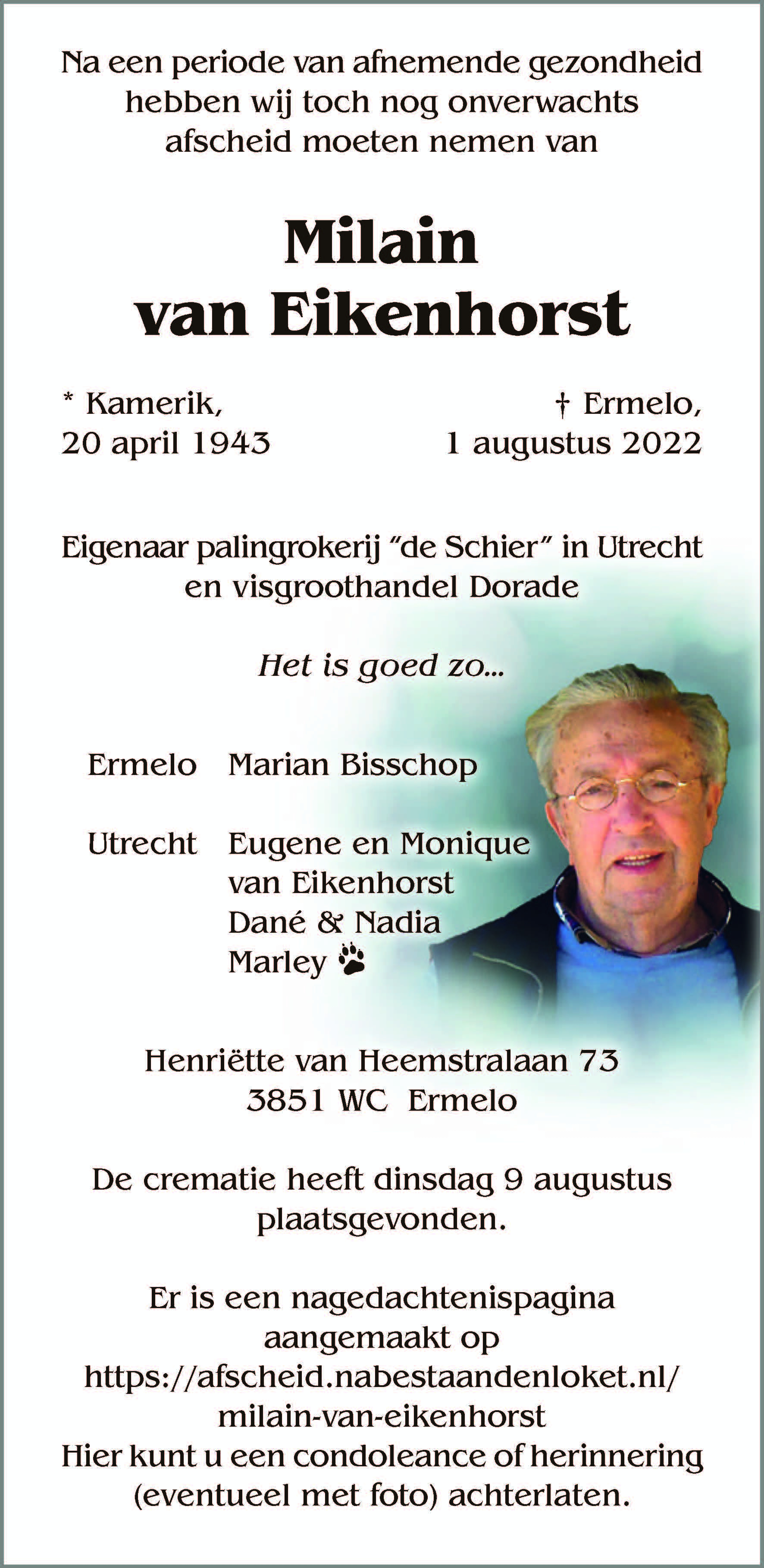 Er is een nagedachtenispagina aangemaakt op https://afscheid.nabestaandenloket.nl/milain-van-eikenhorst
