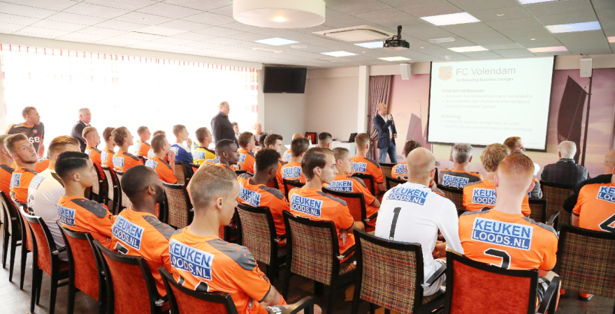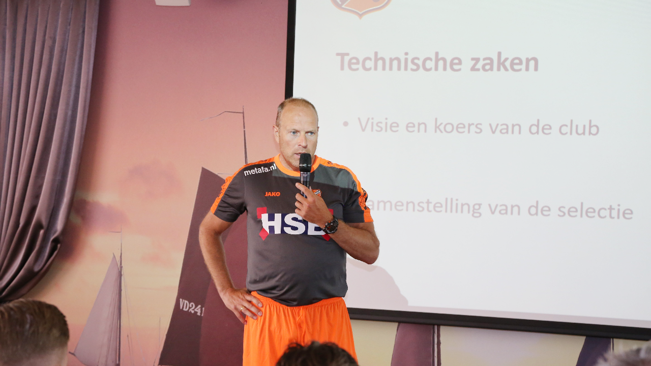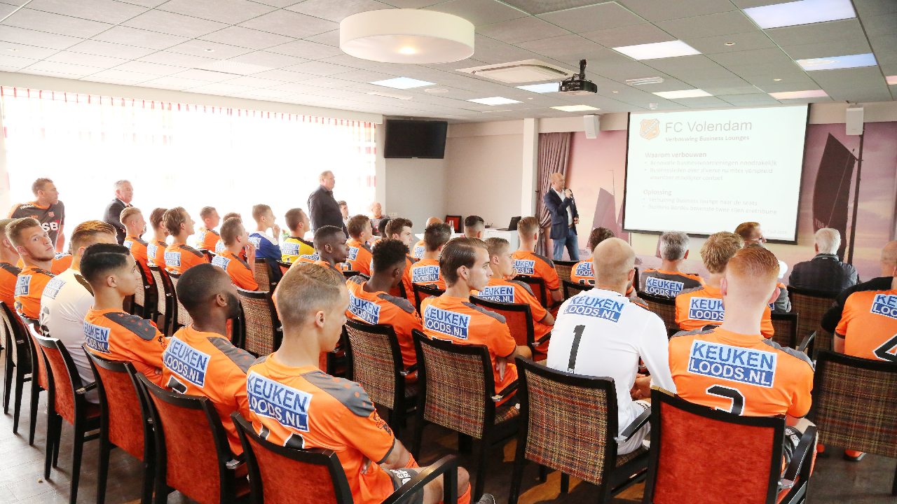 Trainer Robert Molenaar gaf uitleg over de selectie en de doelstelling van dit seizoen. Vorig seizoen werd de nacompetitie gehaald en eindigde FC Volendam 6e. “We gaan proberen het beter te doen in het nieuwe seizoen, zei de trainer. Daarna volgde een fotoshoot.