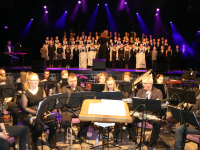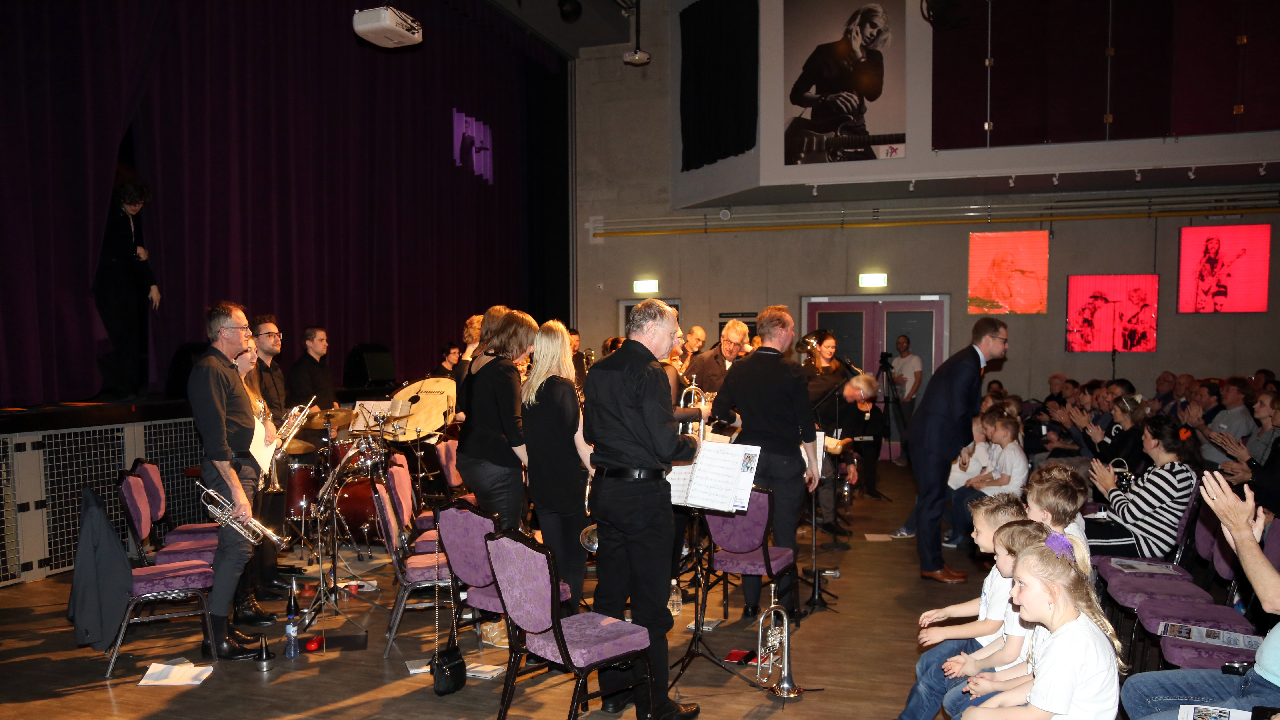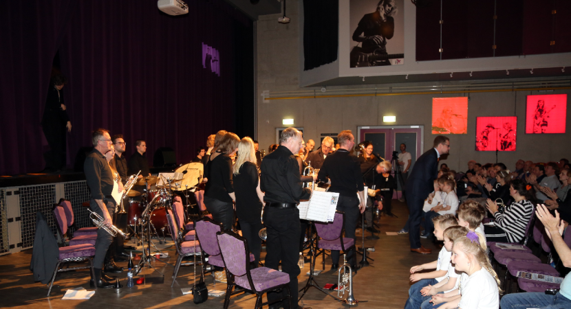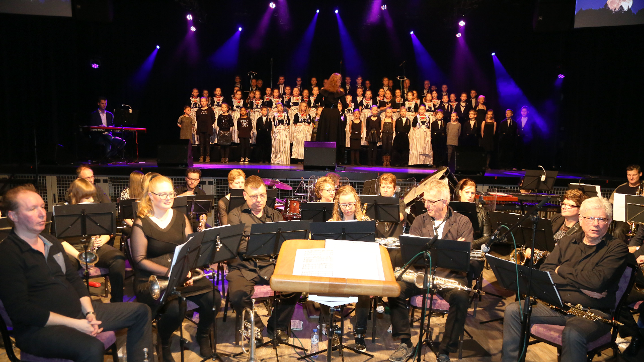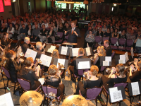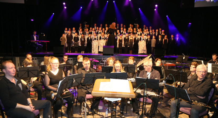 Het fanfarecorps o.l.v. Pieter Koster speelde enkele mooie muziek-stukken. Het grote koor van De Zangertjes was goed op dreef. Als slotlied was er een Mama Mia Medley samen met het fanfare.