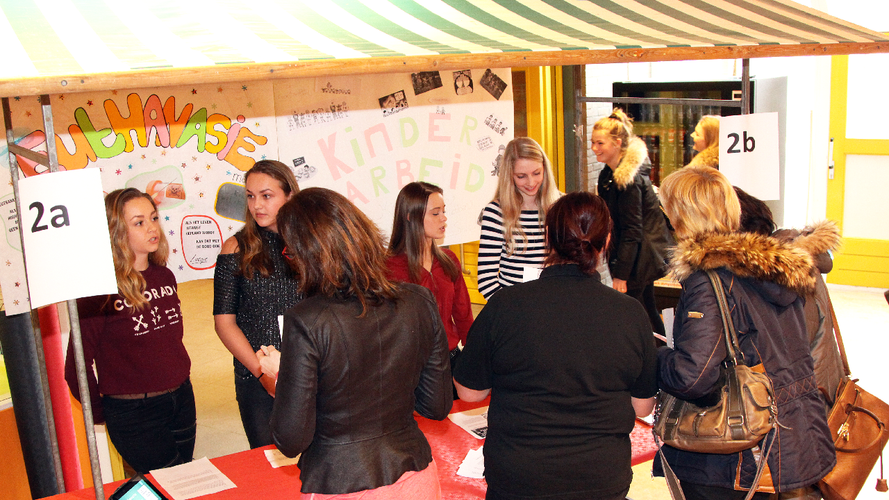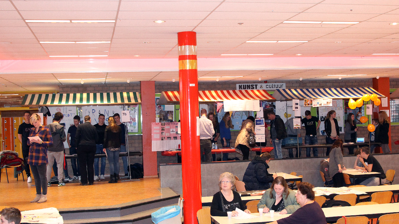 In de kramen verzorgden de leerlingen een presentatie over diverse maatschappelijke onderwerpen zoals; roken, gokken, euthanasie, drankmisbruik, pesten, overgewicht, kinderabeid enz.