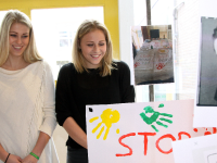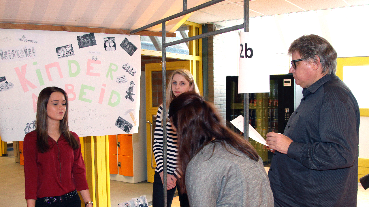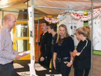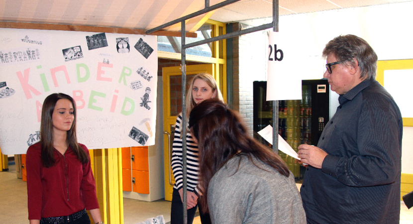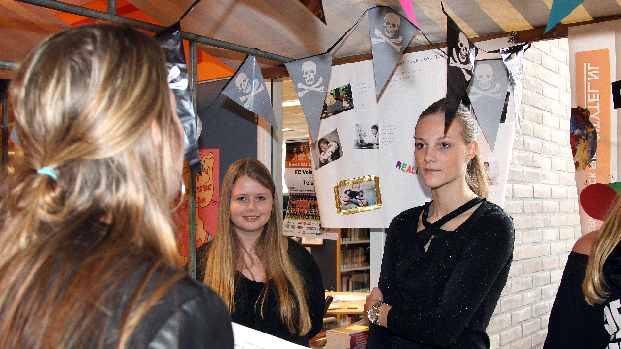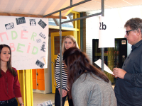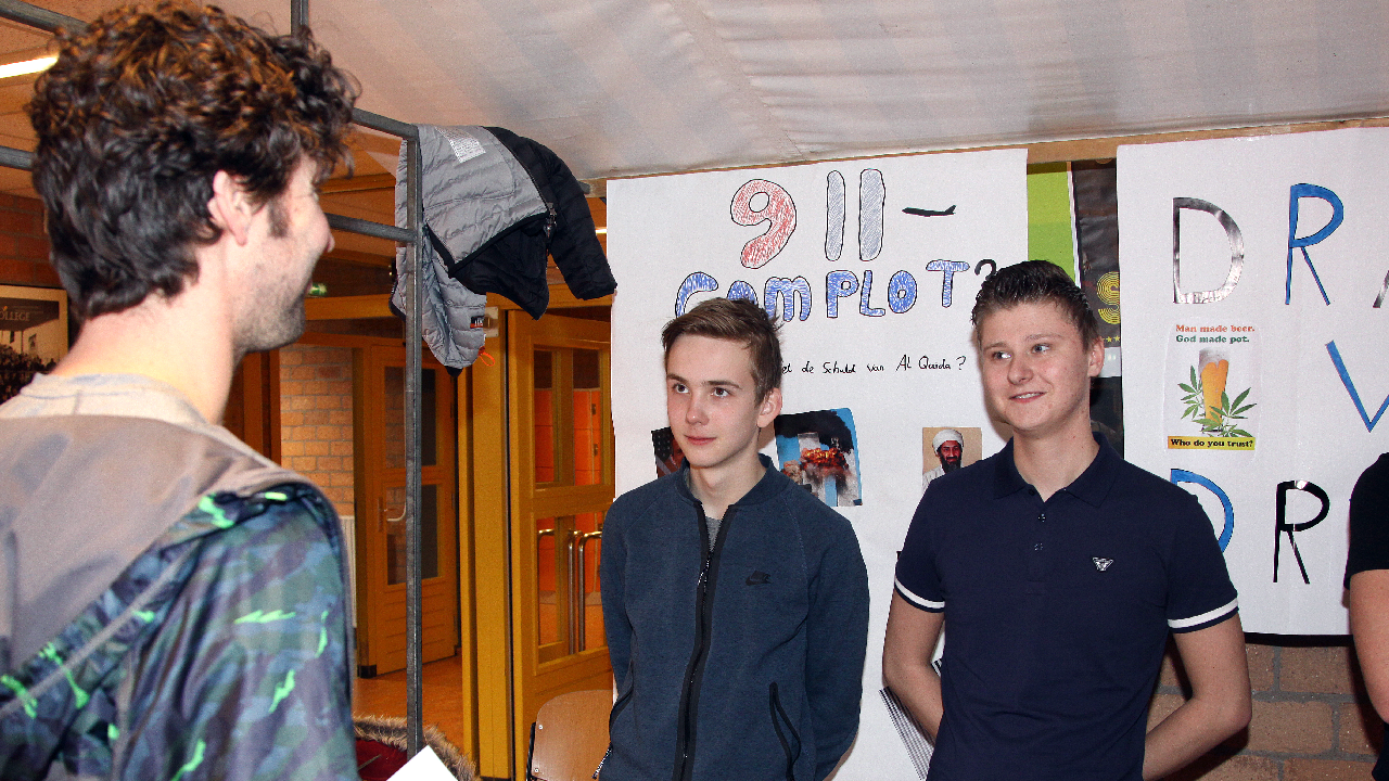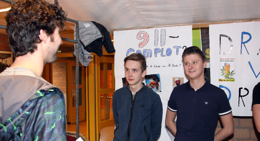 De jongens en meisjes moesten deze stellingen met argumenten voor en tegen verdedigen bij de vele bezoekers. Er was natuurlijk veel werk aan besteed want het behaalde cijfer telt mee voor het tentamen.