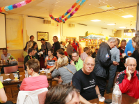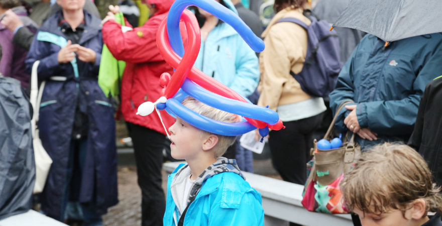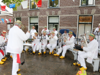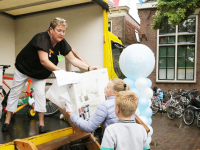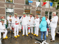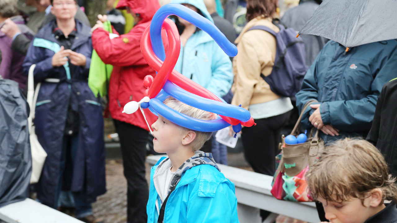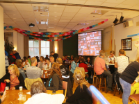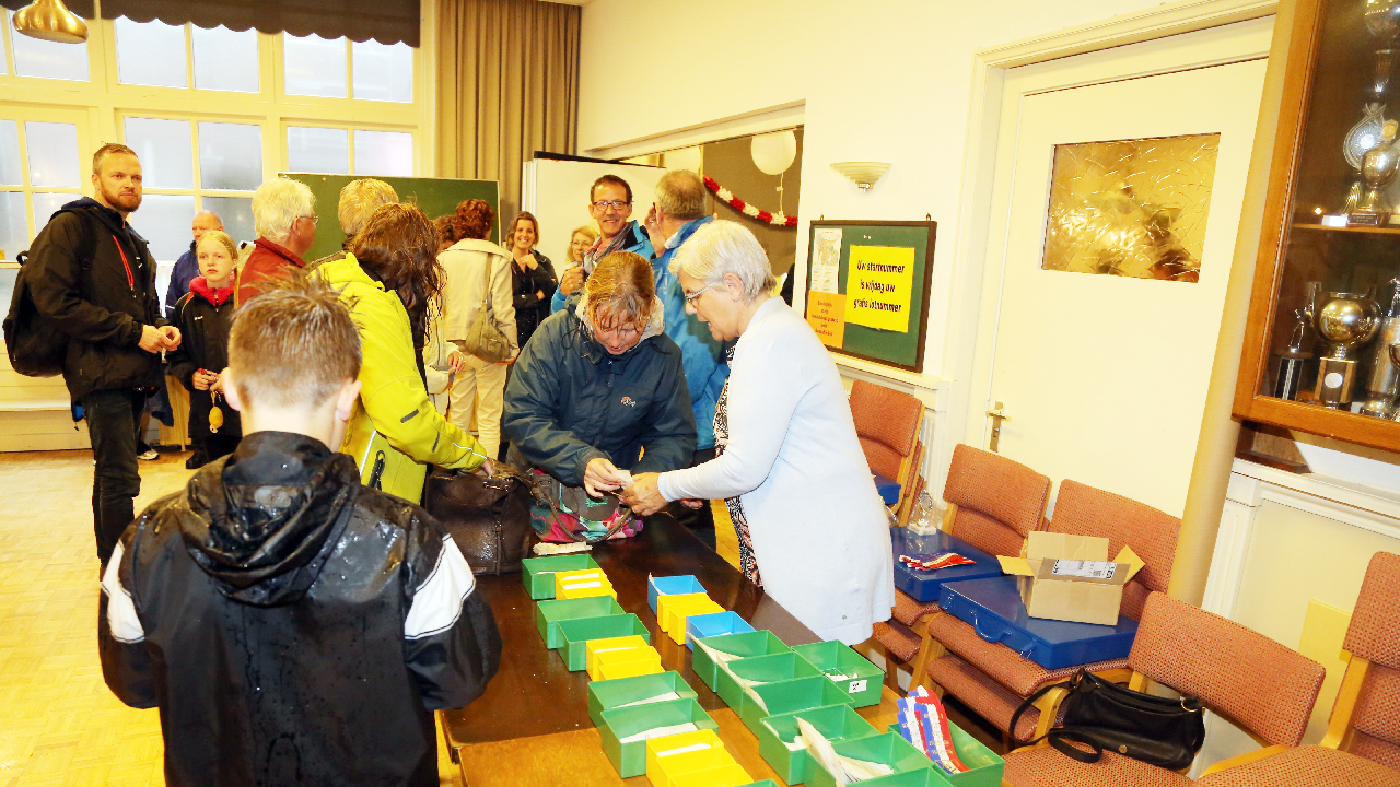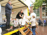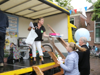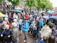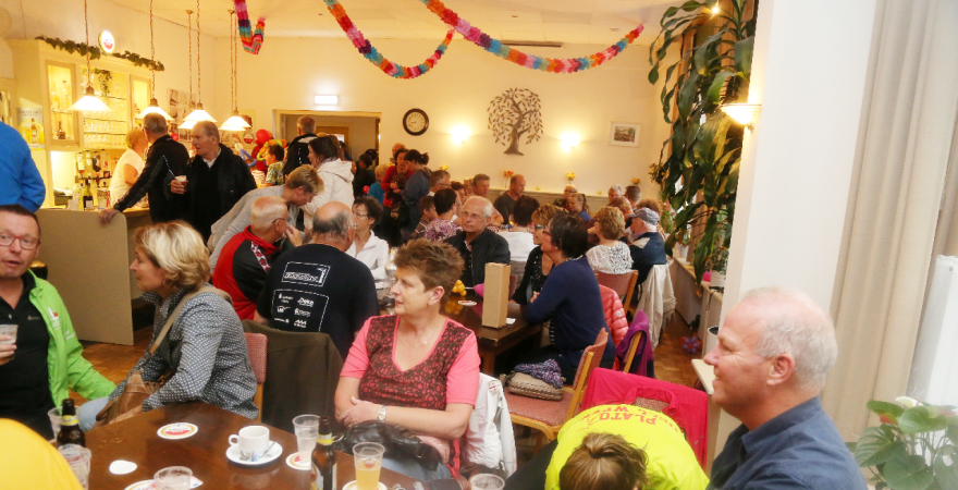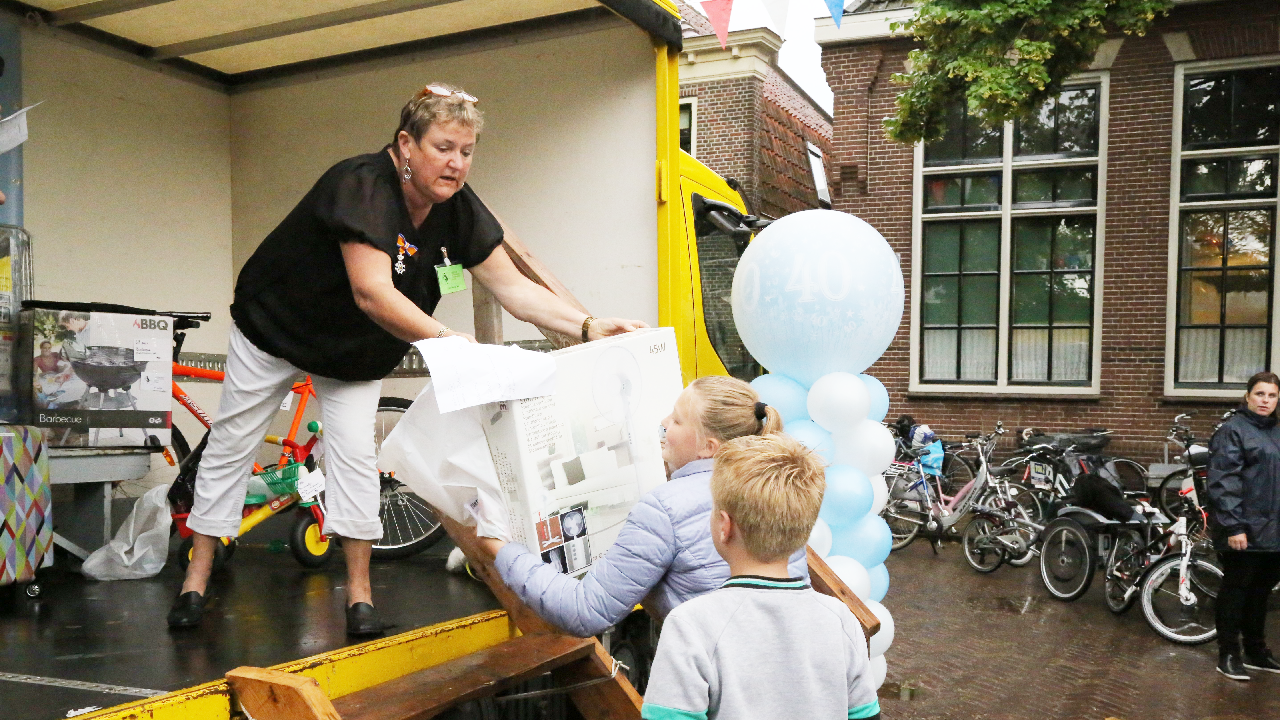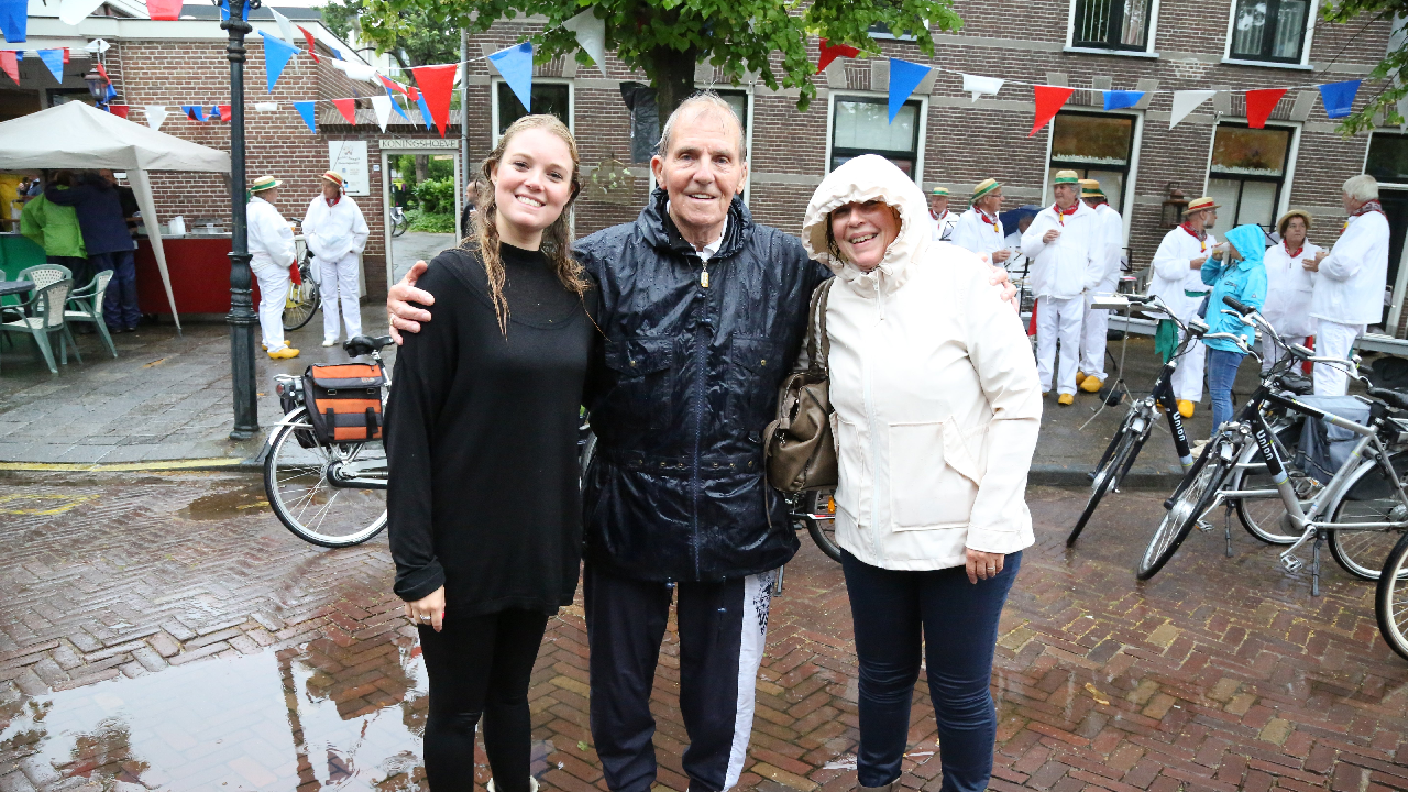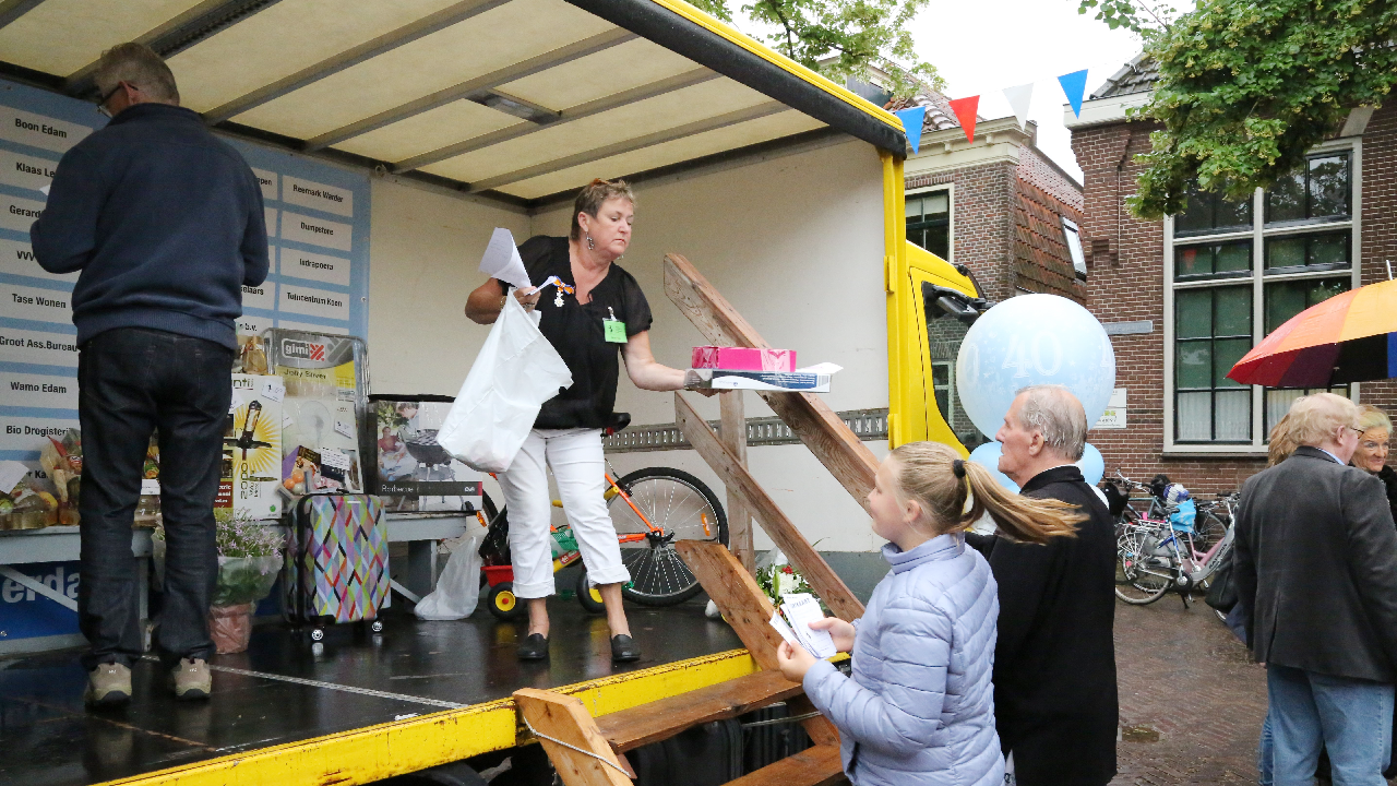 Om 21.00 uur begon de verloting van de extra prijzen en de tien hoofdprijzen van de Fietsvierdaagse. Het regenen werd wat minder, zodat de verloting toch voor het terras van De Burghwall plaatsvond.