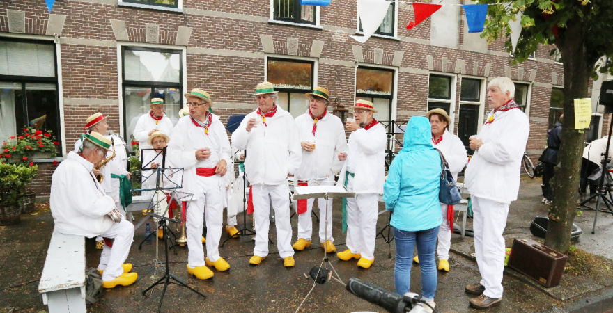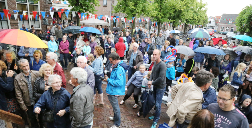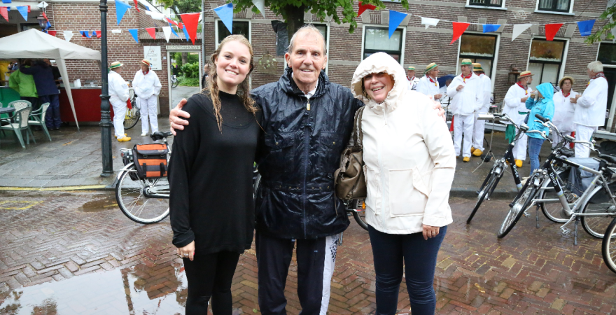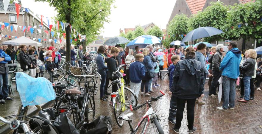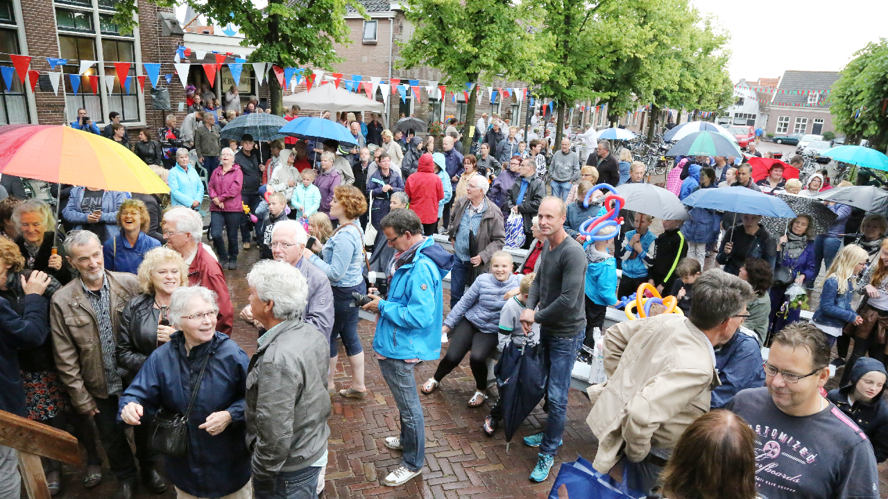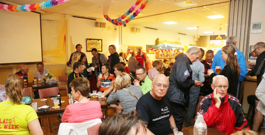 Vrijdag was de slotdag van de Edamse Avondfietsvierdaagse. Het was tevens de slechtste fietsdag van de week want vanaf 16.30 uur begon het te plenzen van de regen. Bij de finish gingen de deelnemers meteen De Burghwall in om de droogte op te zoeken.