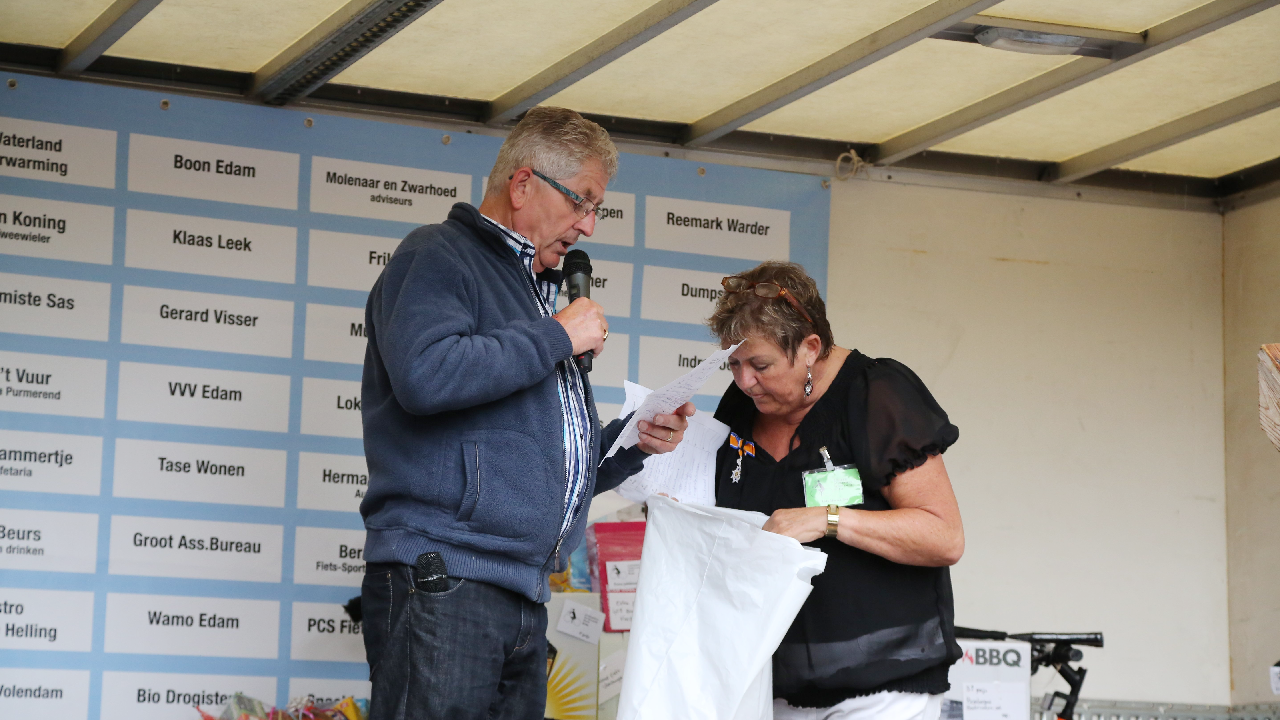 De verloting werd verzorgd door Stef Knook en Lida Morsch en op de startnummers vond de verloting plaats, waaronder een fiets. Tevens werd als hoofdprijs een fiets verloot van Fietsspeciaalzaak Ronald Schot en deze werd op het einde gewonnen door Riet Warger.