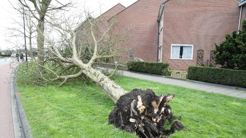 Dinsdag was er een harde storm. Van de bomen waaiden vele takken die op de stoepen, straten en in de parken terecht kwamen. In de Leendert Spaanderlaan waaide een boom door de stormachtige wind omver.