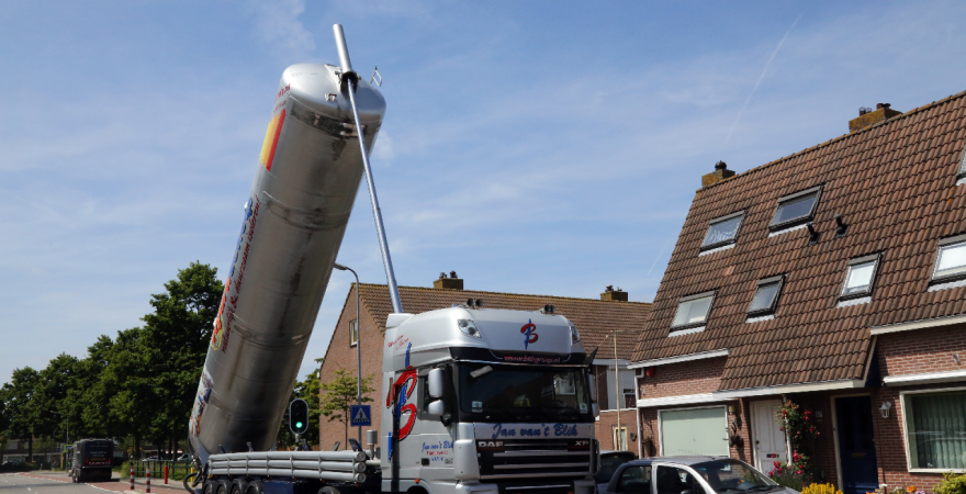 Woensdag stond een tank/keepwagen in de Leendert Spaanderlaan. De tank met schelpen was omhoog getild en de inhoud werd onder de kruipruimte van een huis aan de J. Bontstraat gespoten.