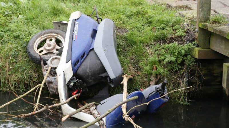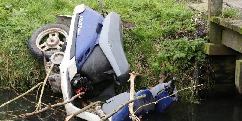 Vermoedelijk door baldadige jongeren is de scooter in het water gereden, onder het mom van “opgeruimd staat netjes”. De Vision scooter is zaterdagmiddag weer uit de sloot getrokken en daarna afgevoerd.