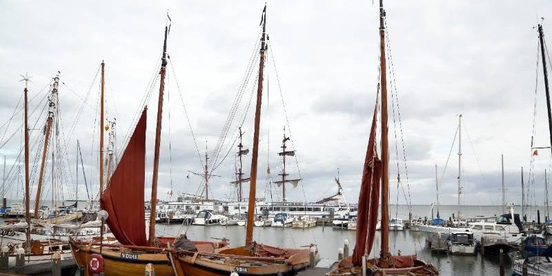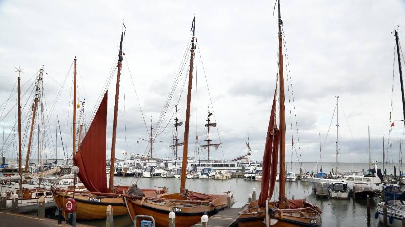 Daarnaast hingen aan de masten van de garnkwakken de rode zeilen te drogen. Het zorgde voor een fraai uitzicht en een havenplaatje wat aan oude tijden deed denken.