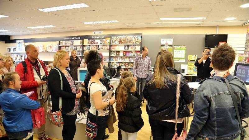 Naast het plaatsen van de handtekening op de hoesjes van de CD nam Jan Smit er alle tijd voor om met z’n fans op de foto te gaan.