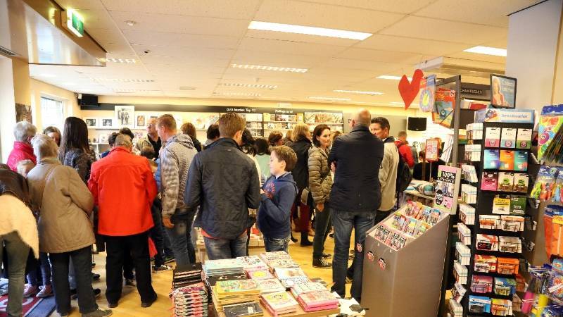 Van de nieuwe plaat van Jan Smit is een jongens- en een meisjes-versie. Veel fans van Jan waren naar JCS gekomen en toen het sig-neren begon stond er een lange rij wachtenden.