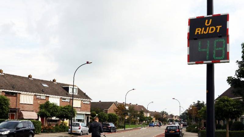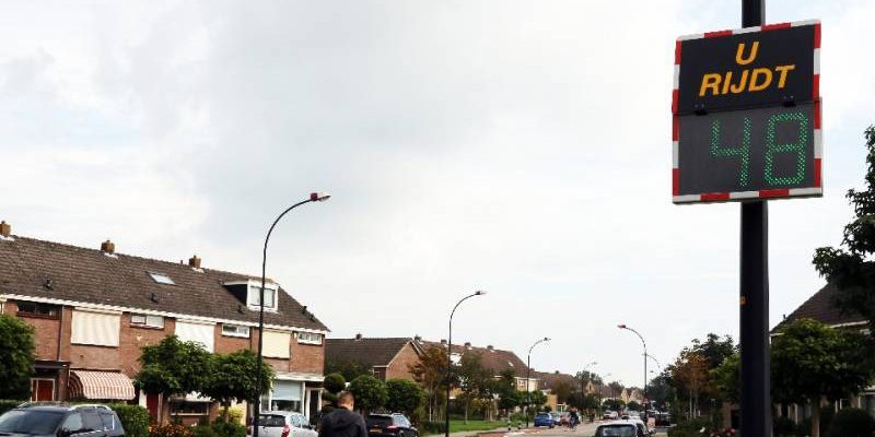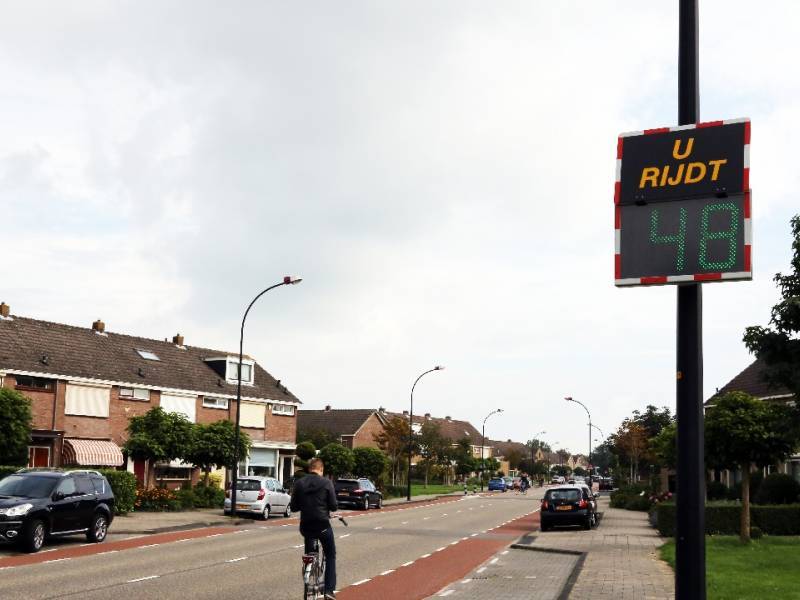 Sinds kort is in de Saturnusstraat, nabij de kruising met de Mercuriuslaan, een bord geplaatst waarop de snelheid aangegeven wordt waarmee de auto’s op deze drukke doorgaande route langsrijden.