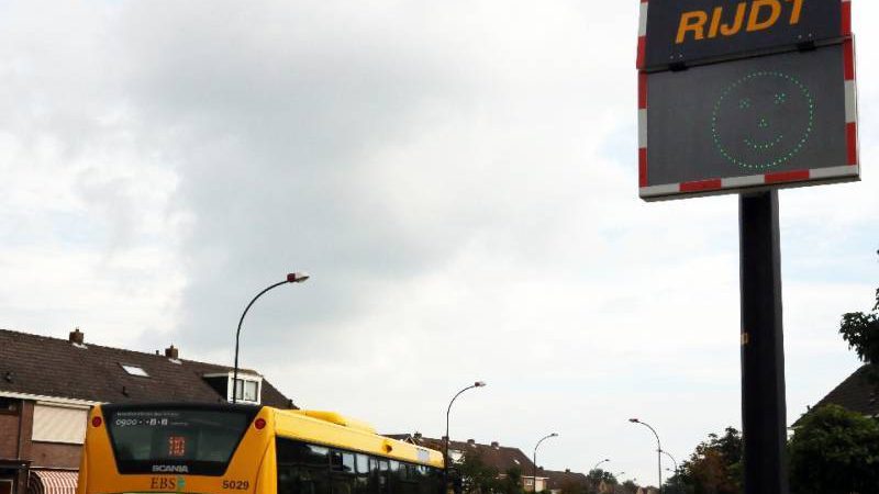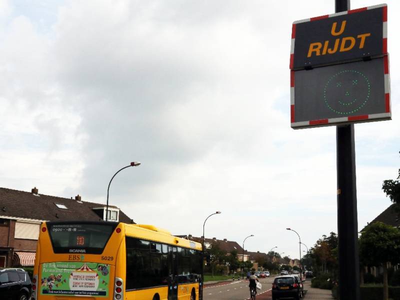 Komende vanaf de Leendert Spaanderlaan zien de automobilisten het bord oplichten. Met groene cijfers wordt aangegeven als men onder de 50 km/uur rijdt en met rode cijfers als er sneller dan de toegestane snelheid gereden wordt in de bebouwde kom.