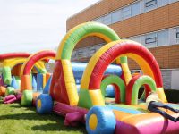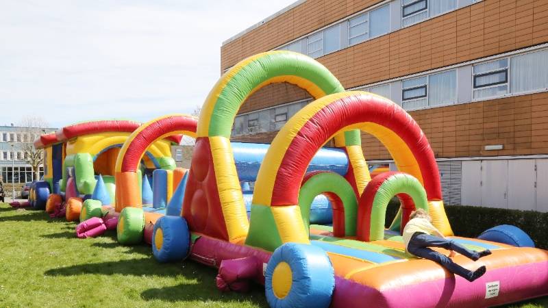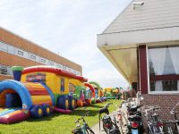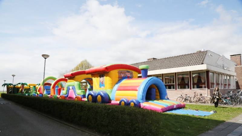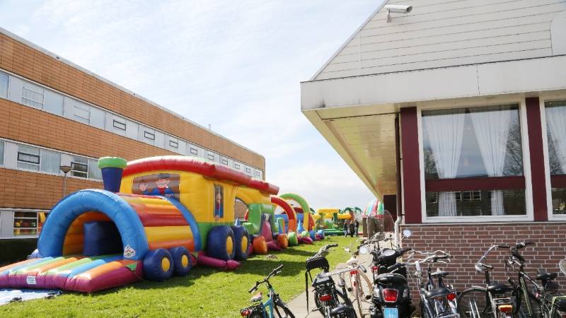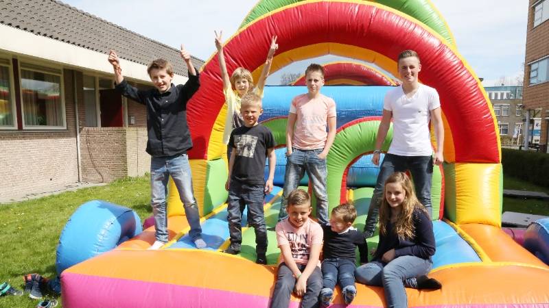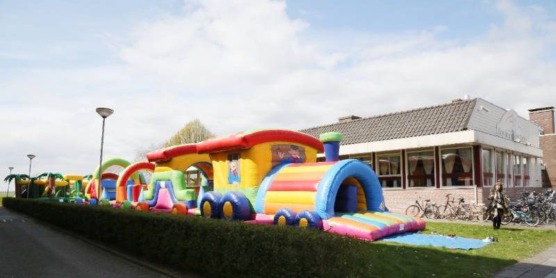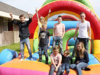 In Bowling “De Zedde” was ook een Communiefeest. Op het veld naast de bowling waren grote opblaasbare speelattributen geplaatst. Terwijl de ouderen binnen aan een hapje en drankje zaten konden de kinderen zich buiten spelend vermaken.