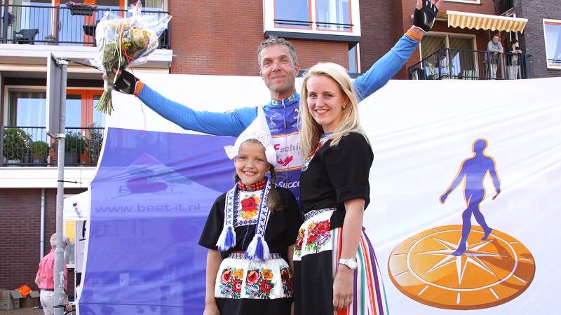 Na een enerverende wedstrijd plaatste Cees een beslissende demarrage waar de overige vluchters geen antwoord op hadden. Solo en met de armen hoog kwam Cees alleen over de streep terwijl het Volendamse publiek juichte en de handen blauw klapte.