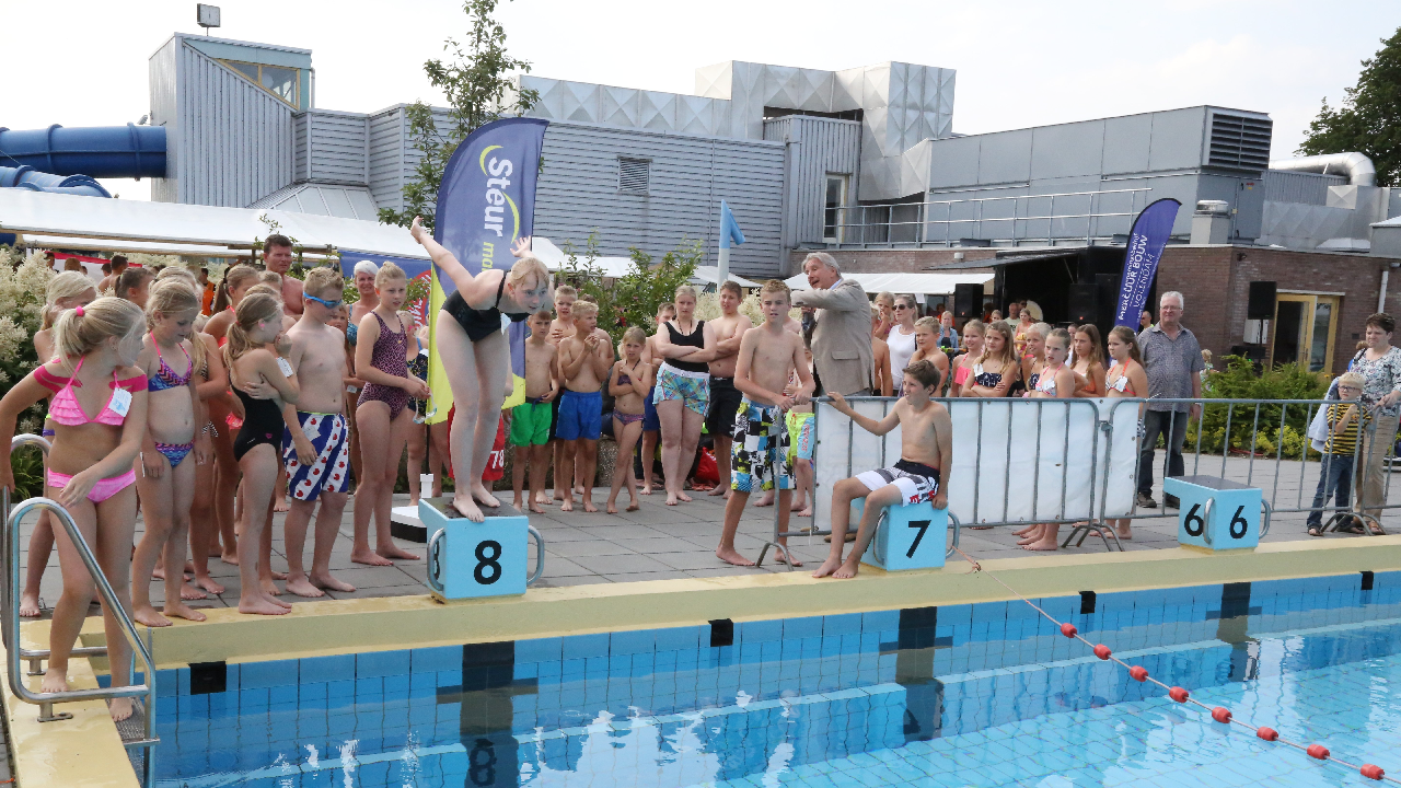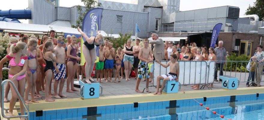Maandagavond om klokslag 18.00 uur ging de 41-ste editie van de ED-VO Zwemvierdaagse van start met ideaal weer. Dit grote zwemevenement wordt gesponsord door Steur Makelaars & Ver-zekeringen. Alle deelnemers kregen een mooie Steur-rugzak kado.