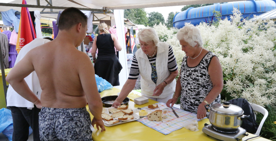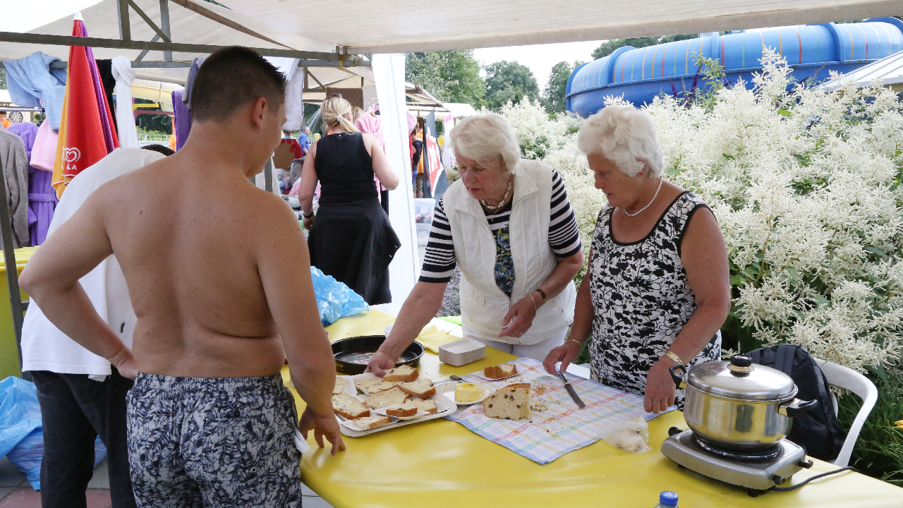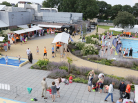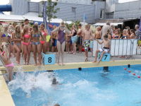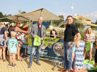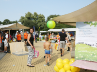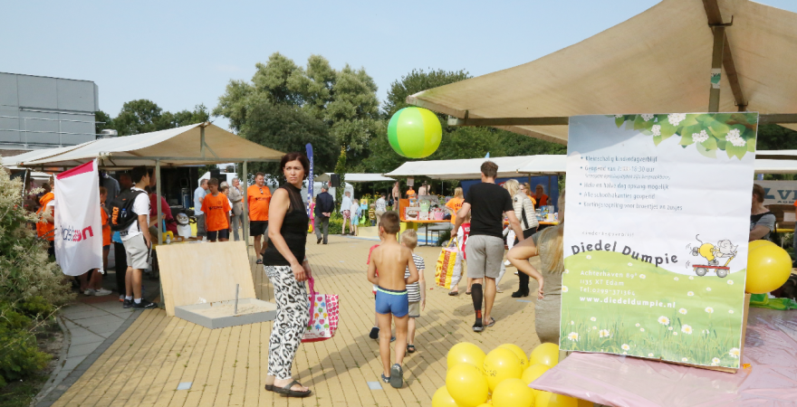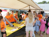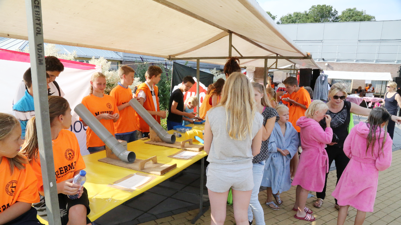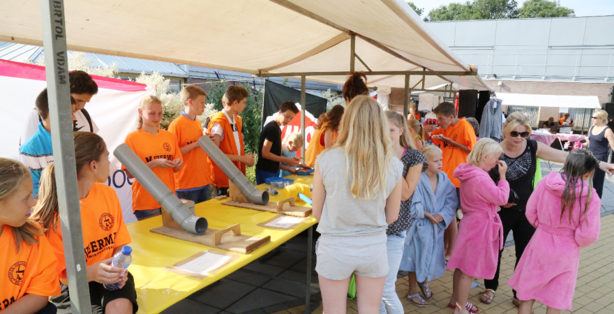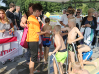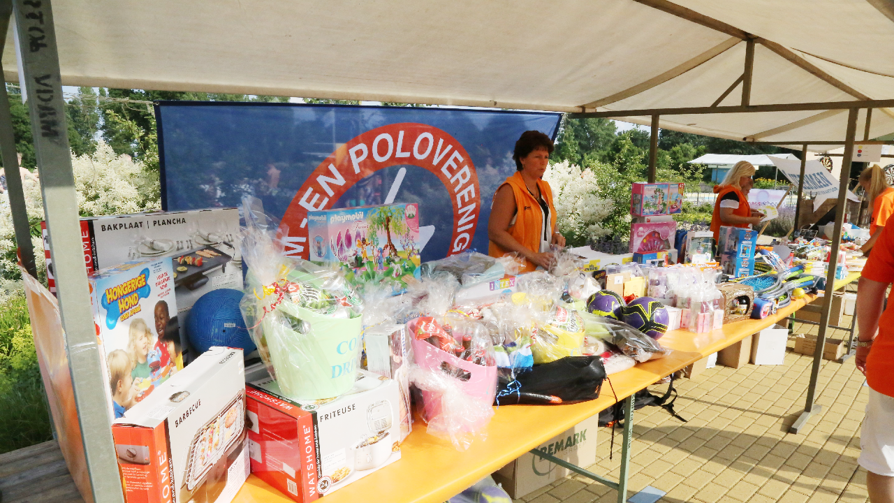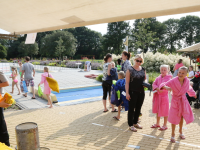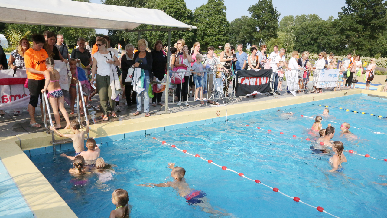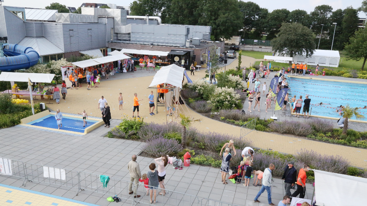Het startsein werd gegeven door wethouder Hans Schütt. Na “3-2-1” ging de eerste zwemster van start voor de tien baantjes van 50 meter. Op het terrein van De Waterdam staan weer veel kramen met spellet-jes, de verkoop van bolle buisjes en een loterij met veel prijzen.
